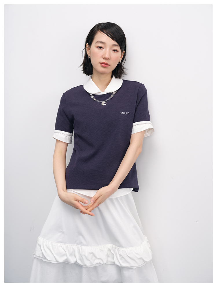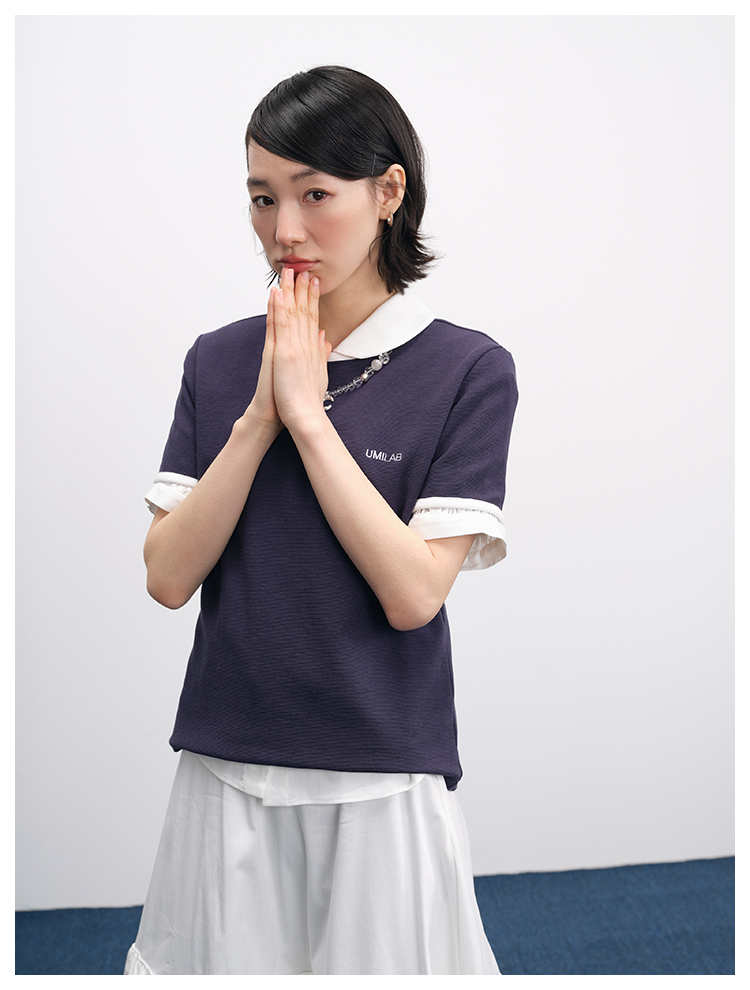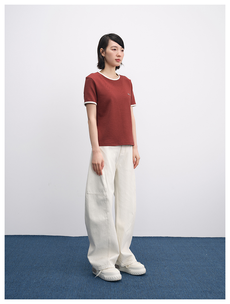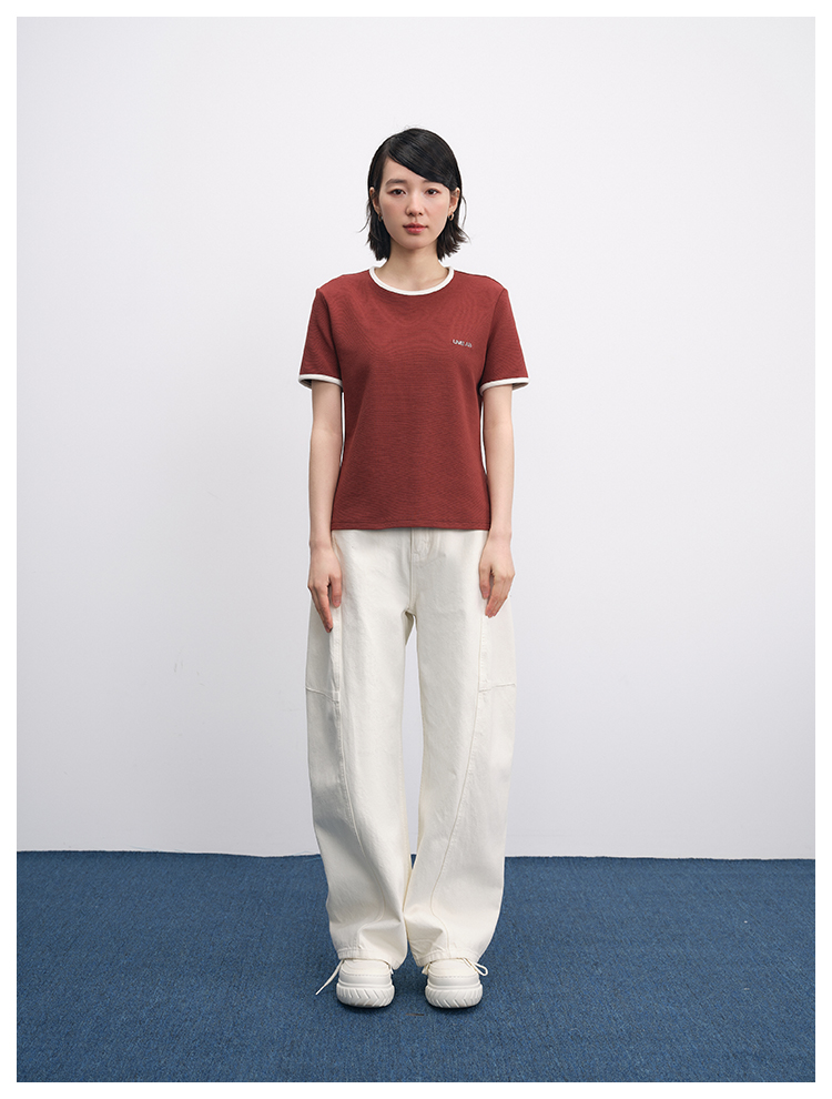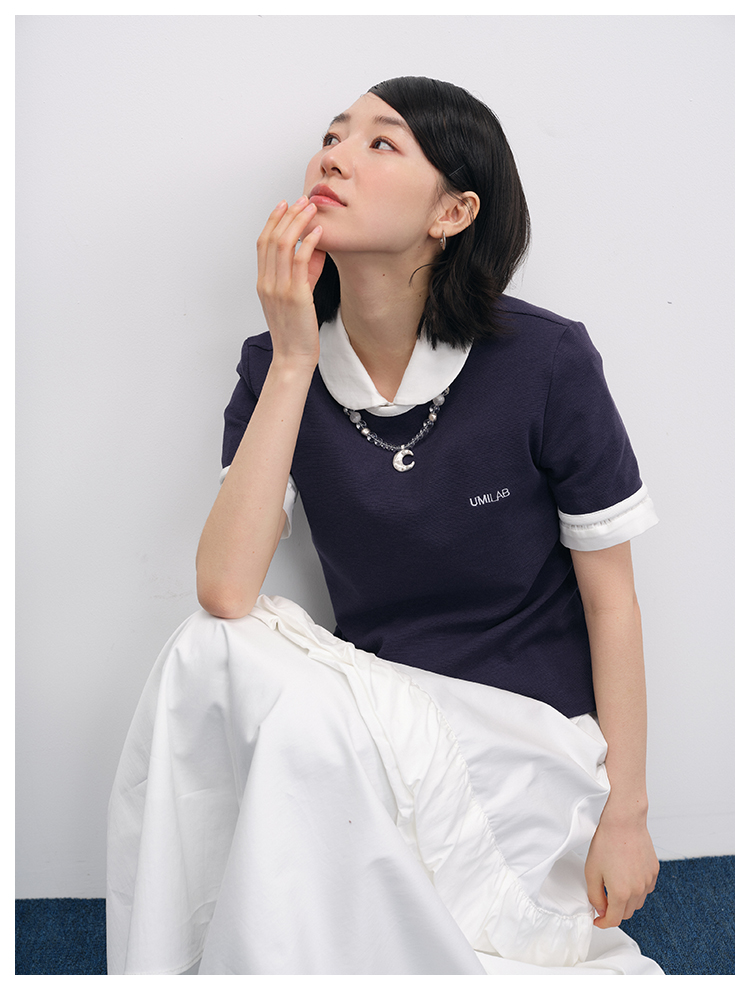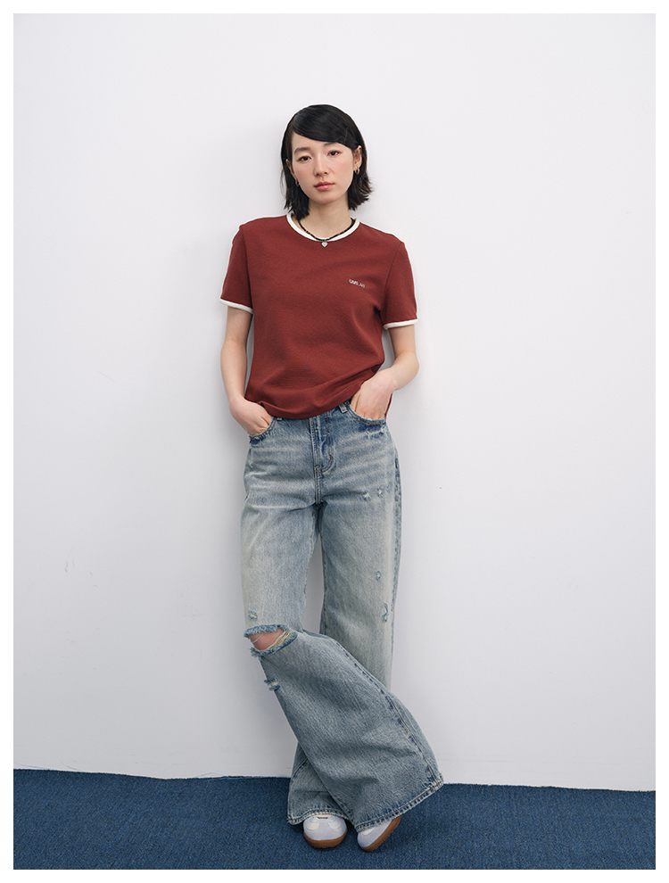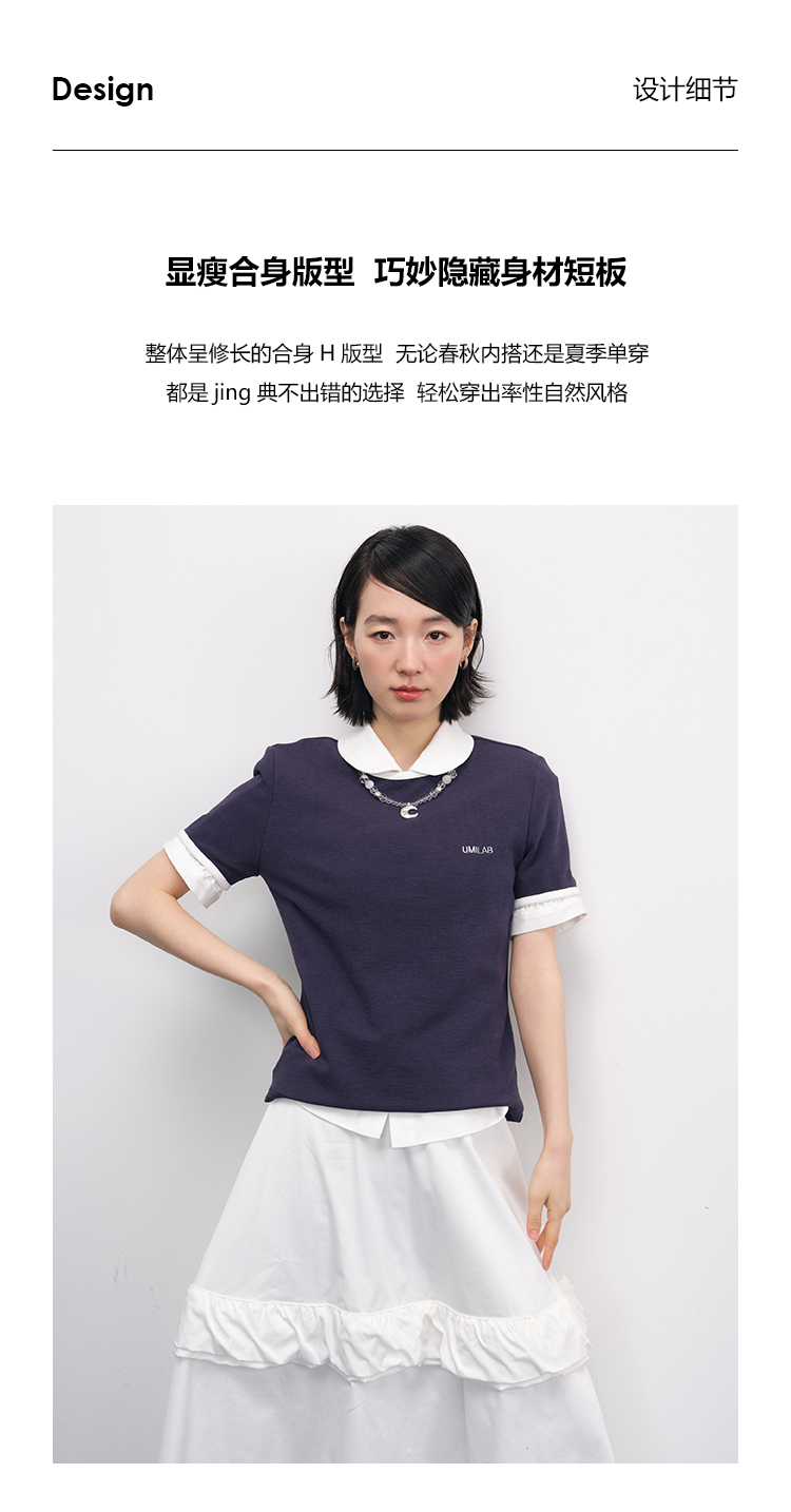 UMILAB【春游】复古miu风 优可丝棉混纺亲肤百搭撞色包边T恤T706H