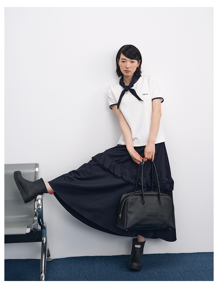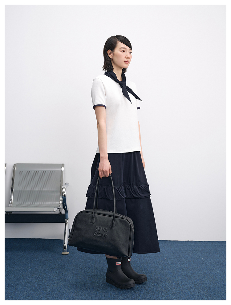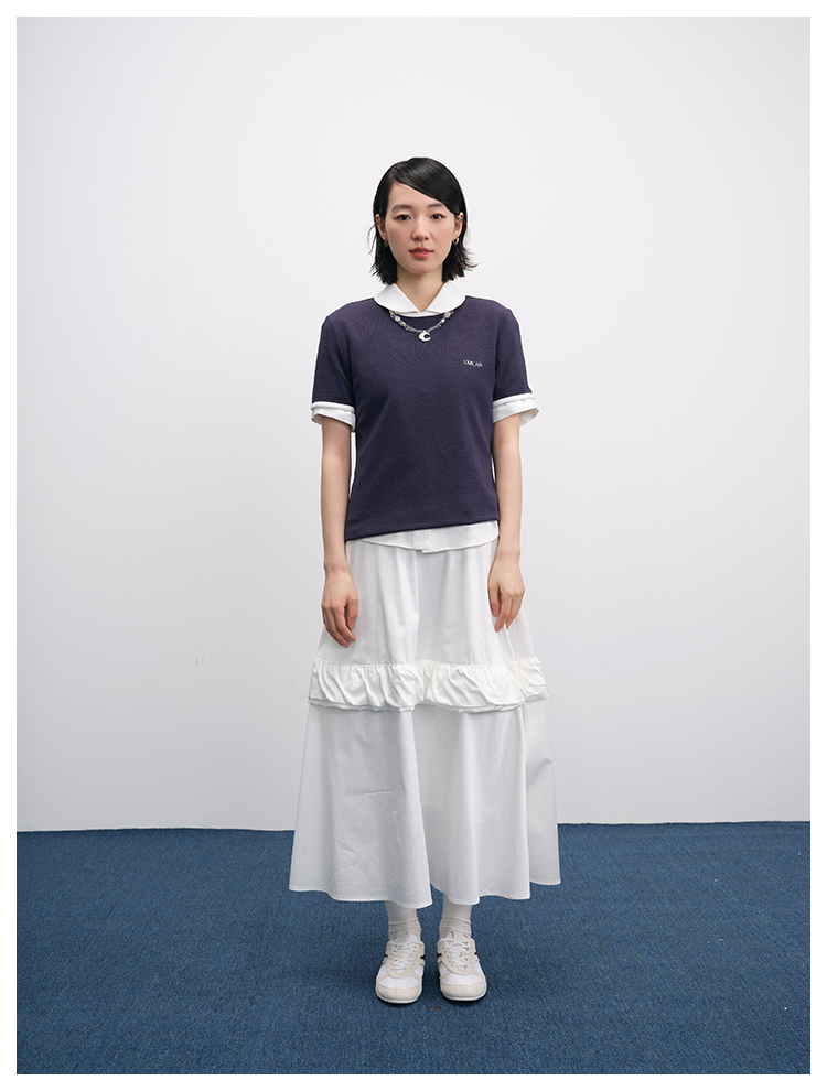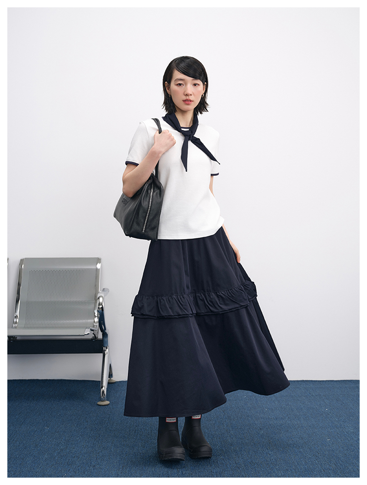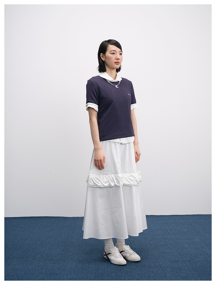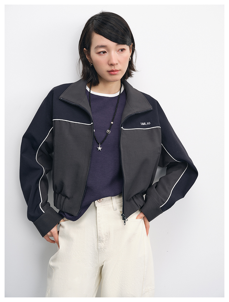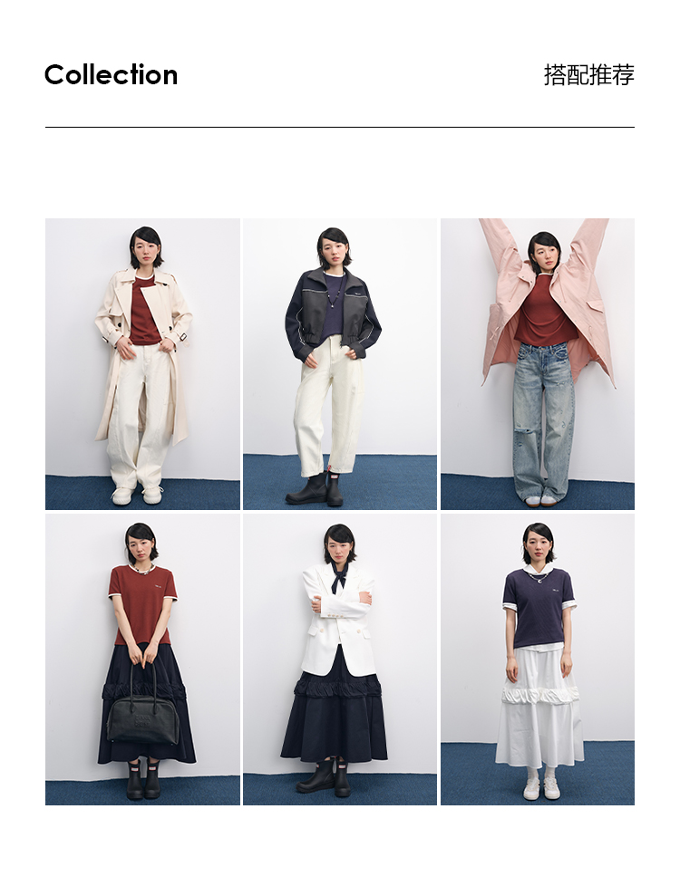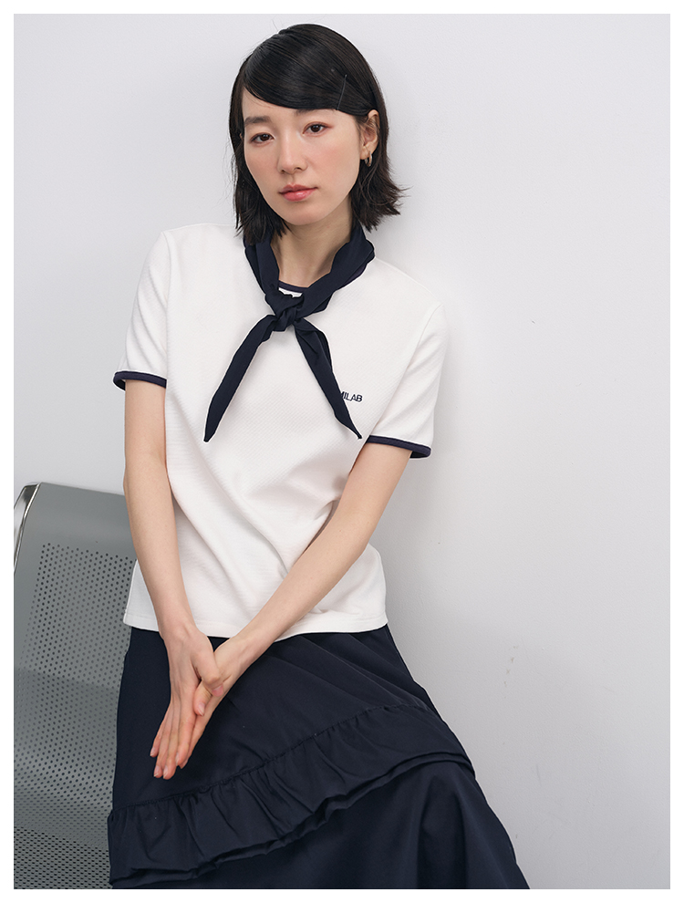 UMILAB【春游】复古miu风 优可丝棉混纺亲肤百搭撞色包边T恤T706H