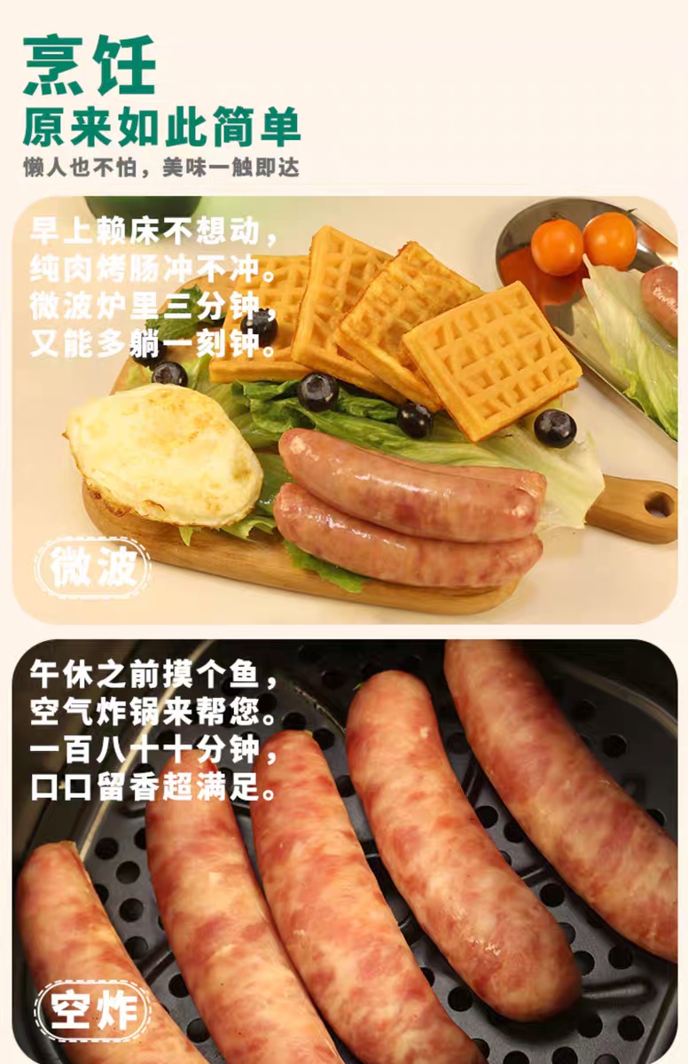 4. 营养丰富:黑猪肉含有丰富的优质蛋白质和微量元素,搭配均衡的配料,肉肠营养丰富。