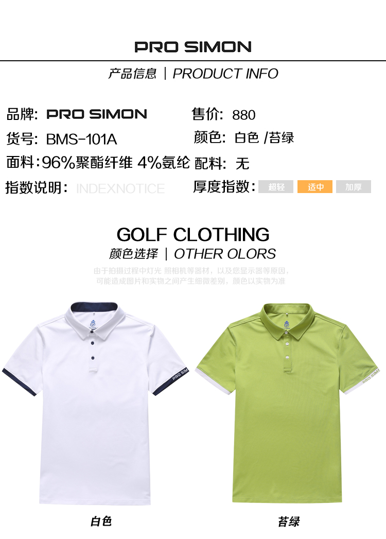 BMS-101A(PROSIMON高尔夫男款春夏短袖简约风翻领Polo衫)