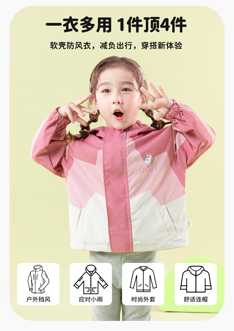 贝贝怡2025春季新款女童防风外套儿童运动户外休闲软壳衣工装风外套ZB1ES046