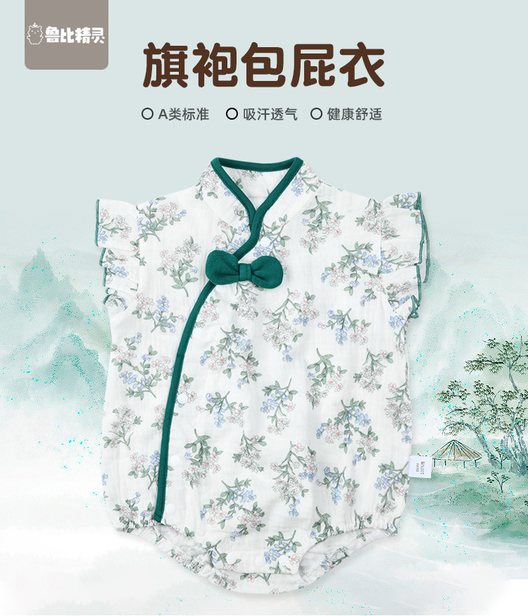 【旗袍包屁衣】婴儿夏装薄款旗袍连体衣2023新款女宝满月照百日宴中国风包屁衣