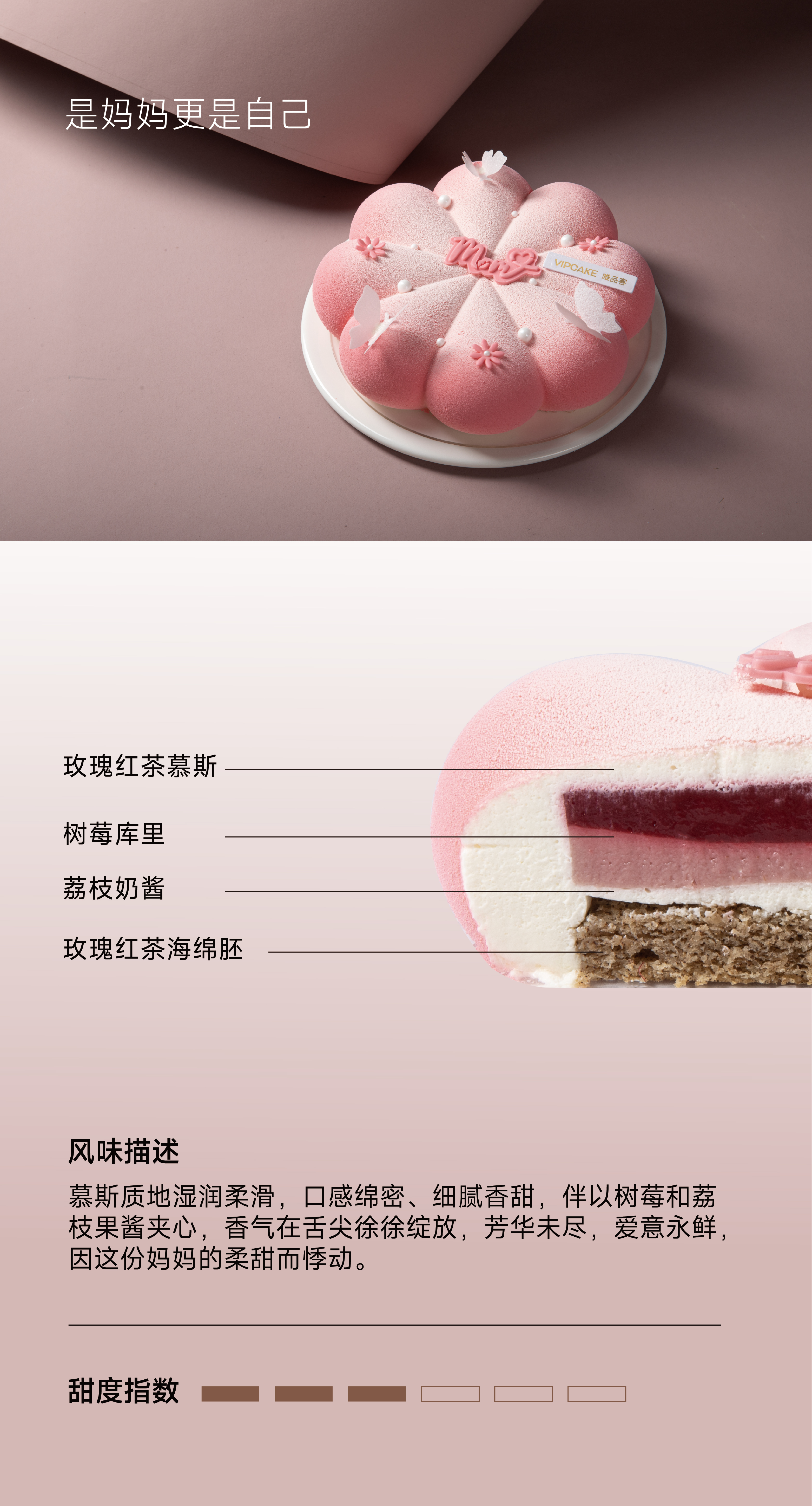 表面粉色花和中间mom牌子是翻糖,白色糖珠点缀,白蝴蝶是糯米纸。均为装饰,不能食用。