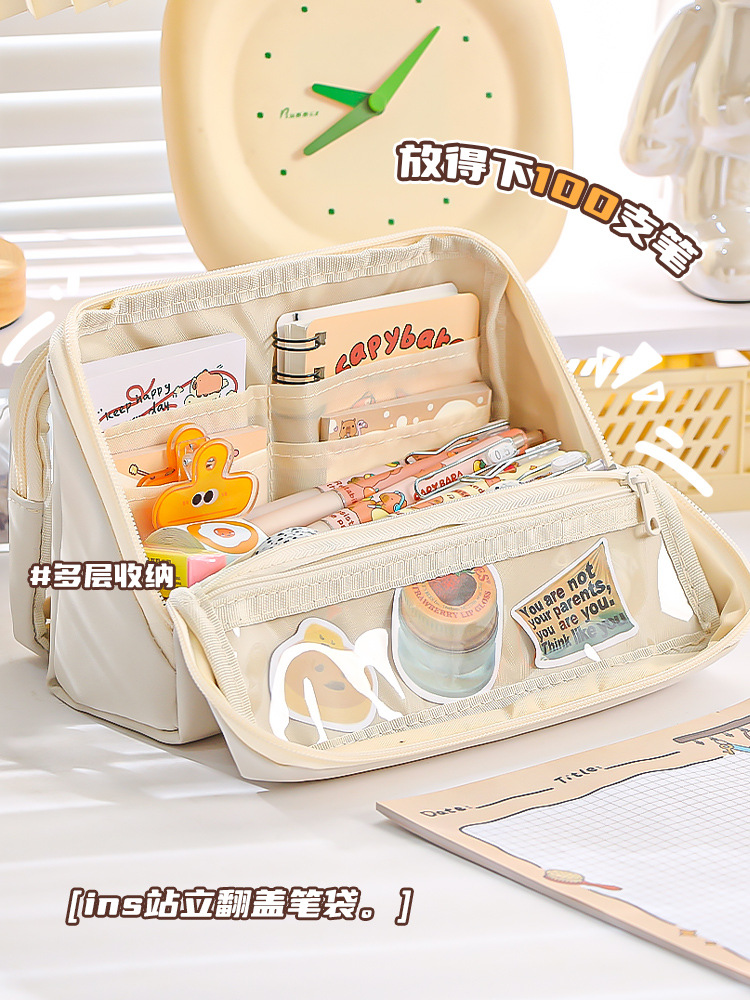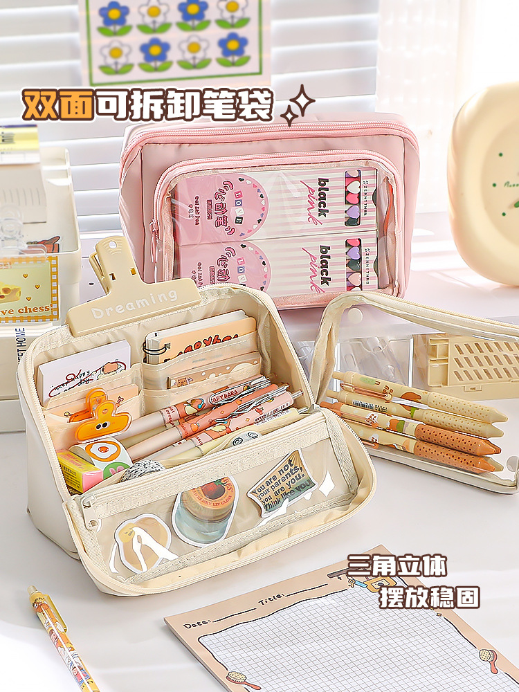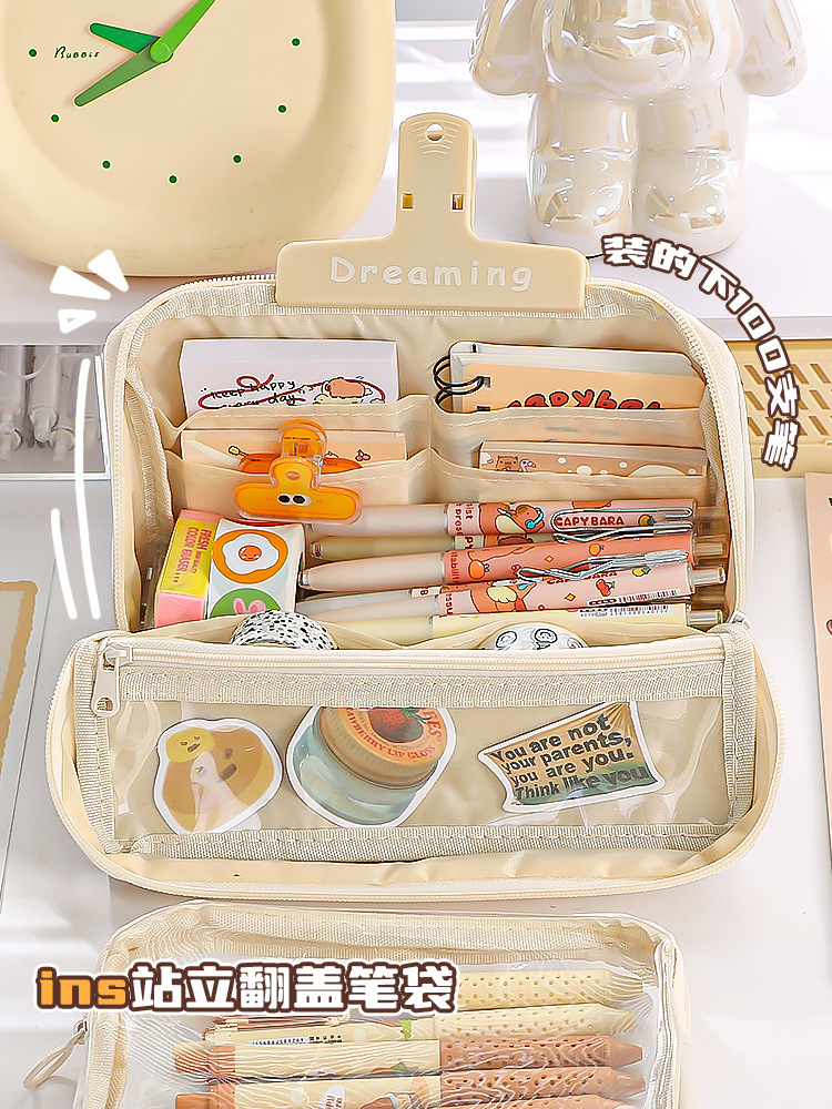 【可轻松装一学期用的笔】九层分类收纳 双面可拆式翻盖笔袋 可放100支笔 20cm直尺可放 隔袋收纳更整洁