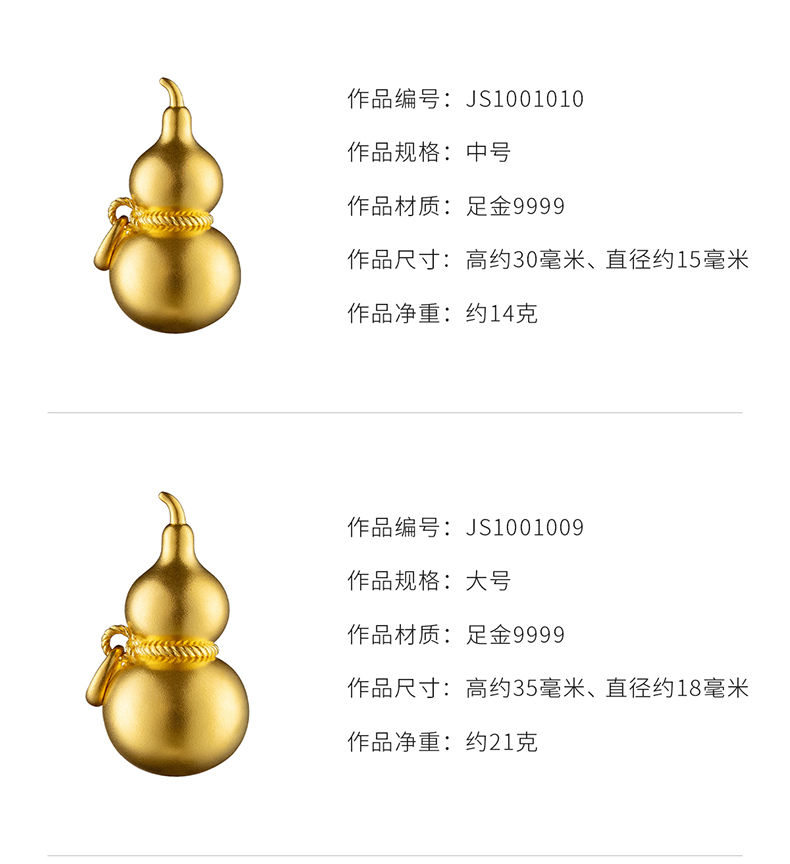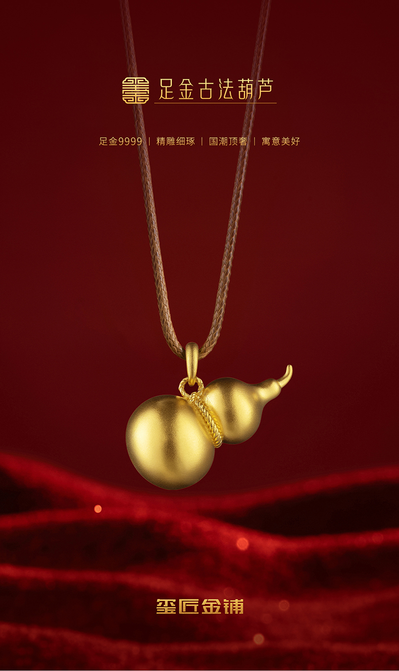 玺匠金铺《足金古法葫芦》足金9999黄金吊坠 吉祥饰品挂件