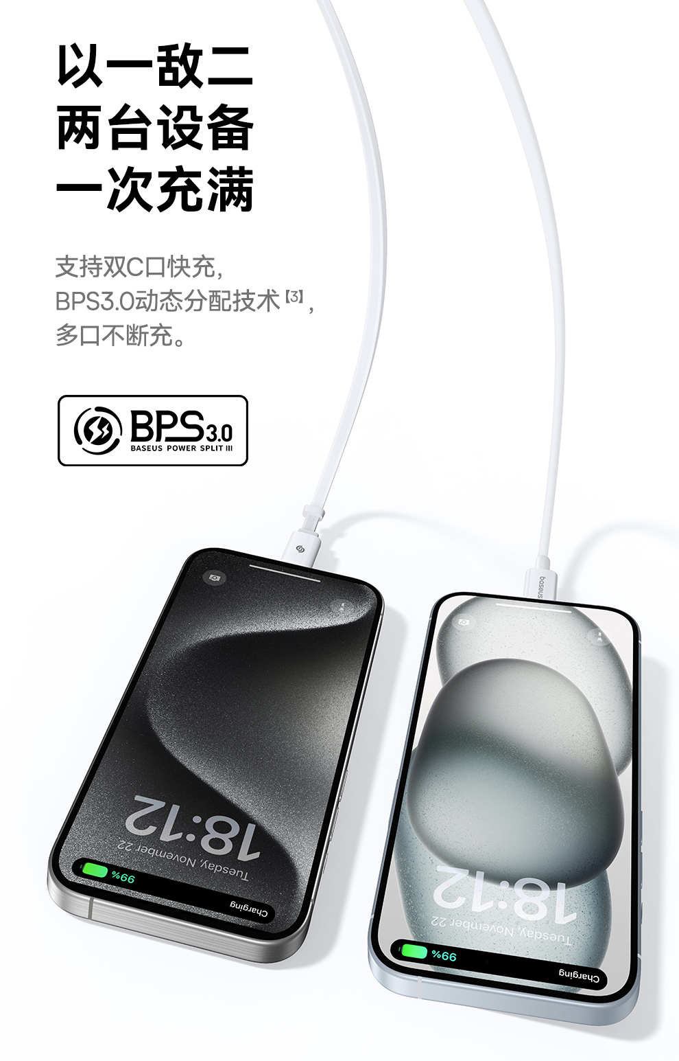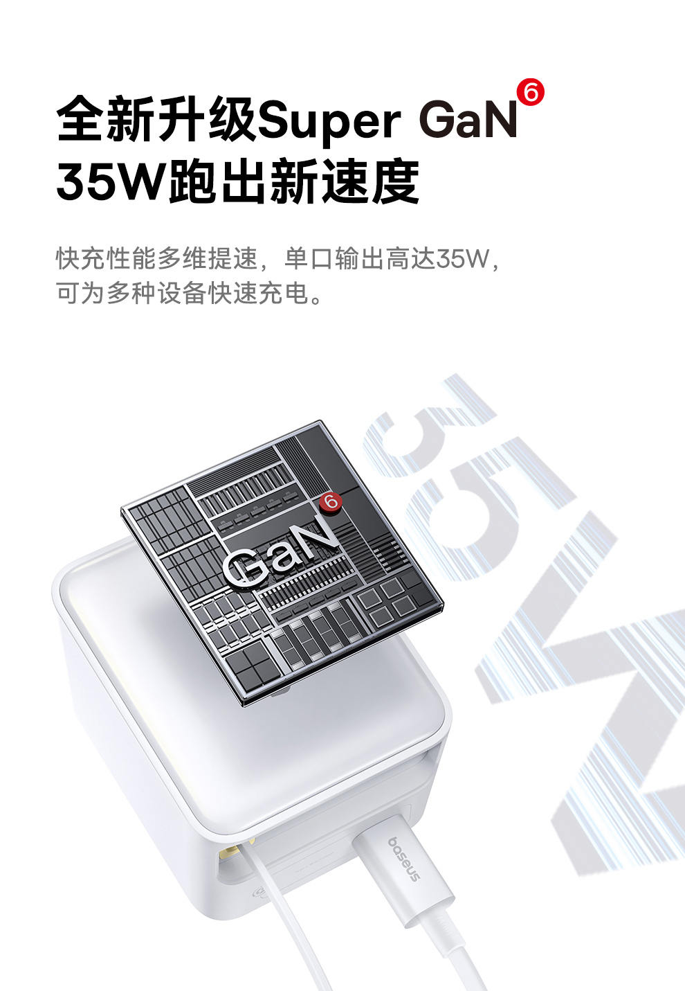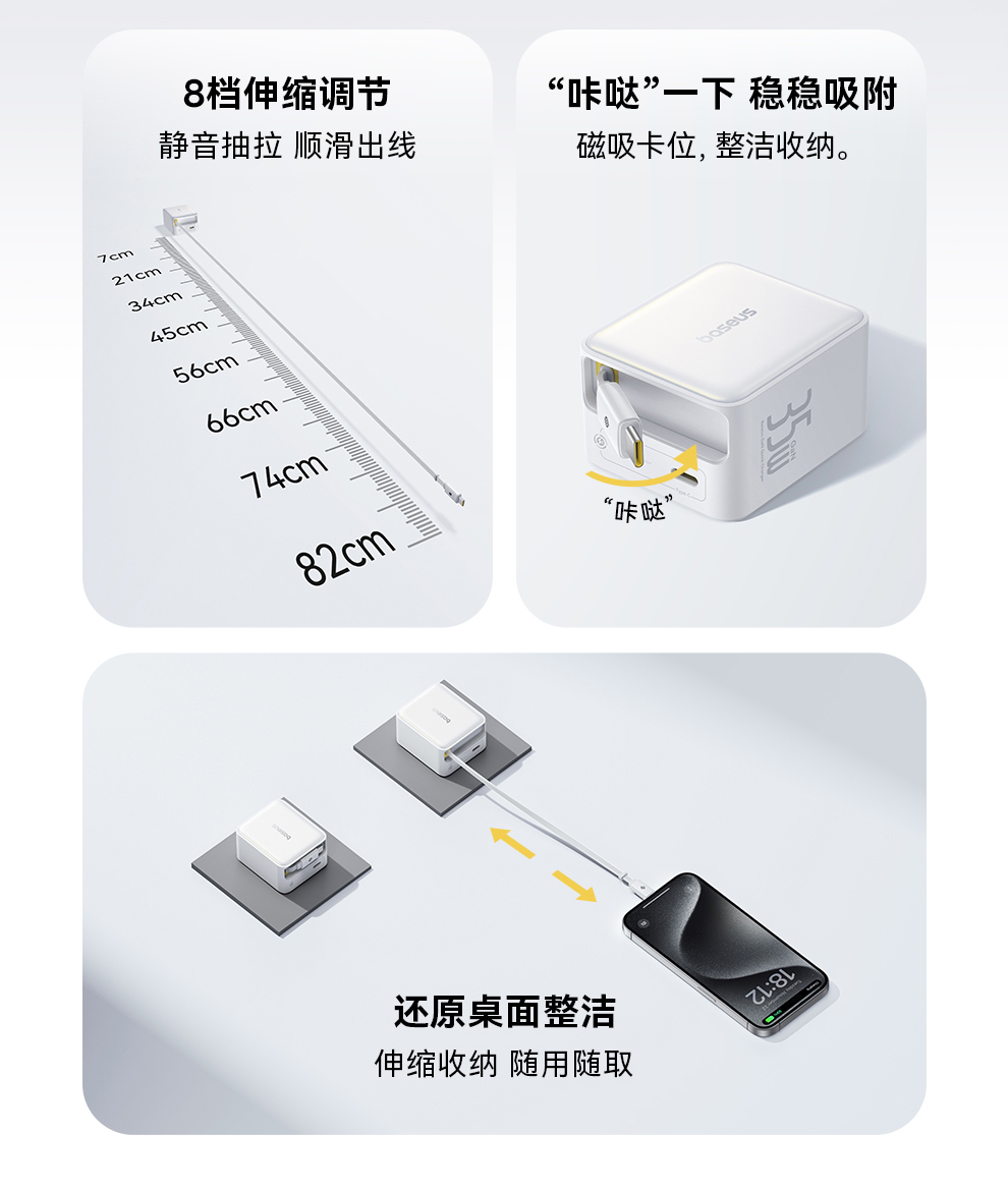 倍思 Super GaN 伸缩线快充充电器 2C/C+iP 35W