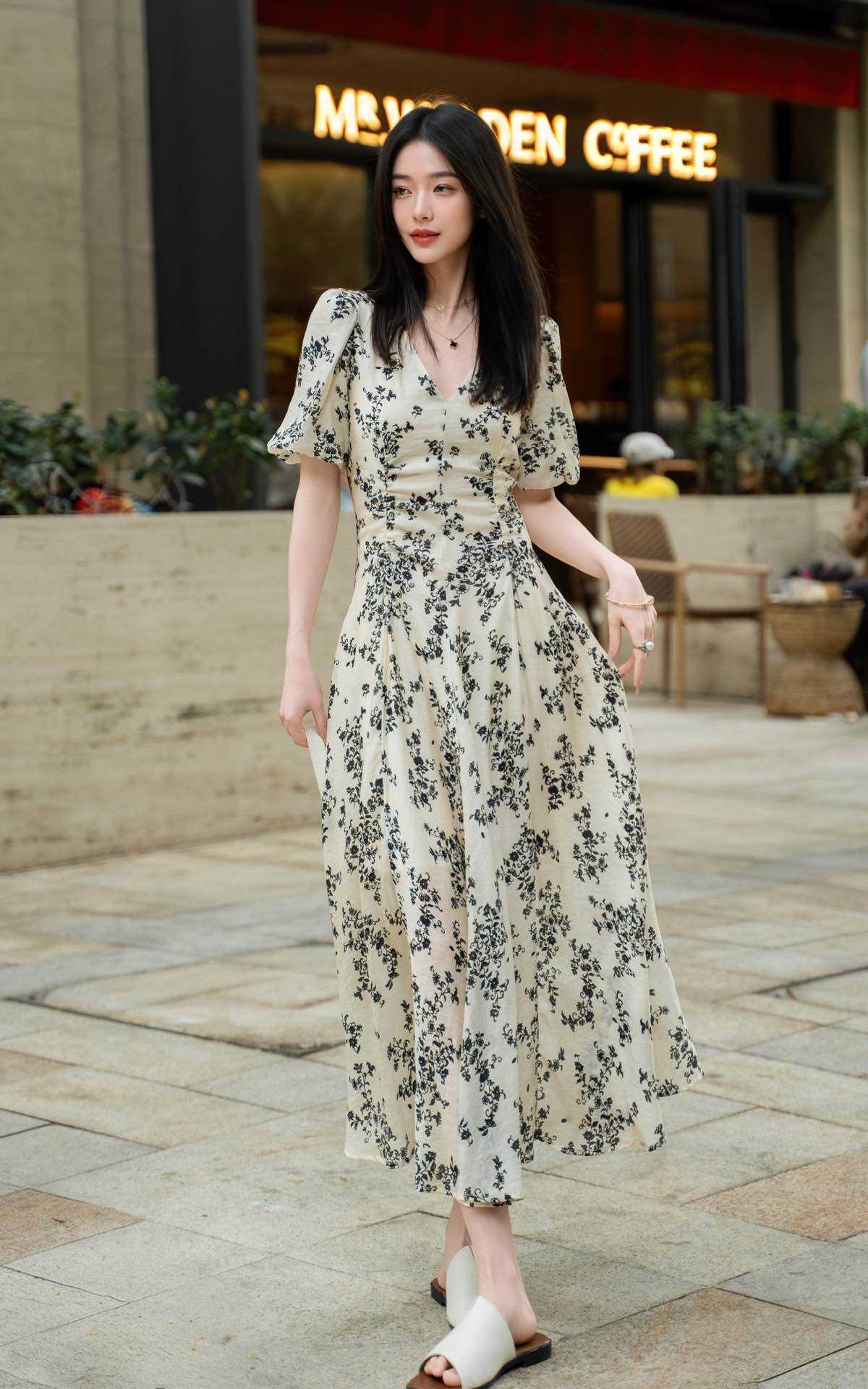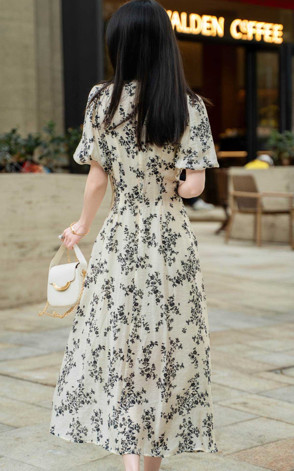 法式碎花方领泡泡袖长裙SZ2S121-如梦令