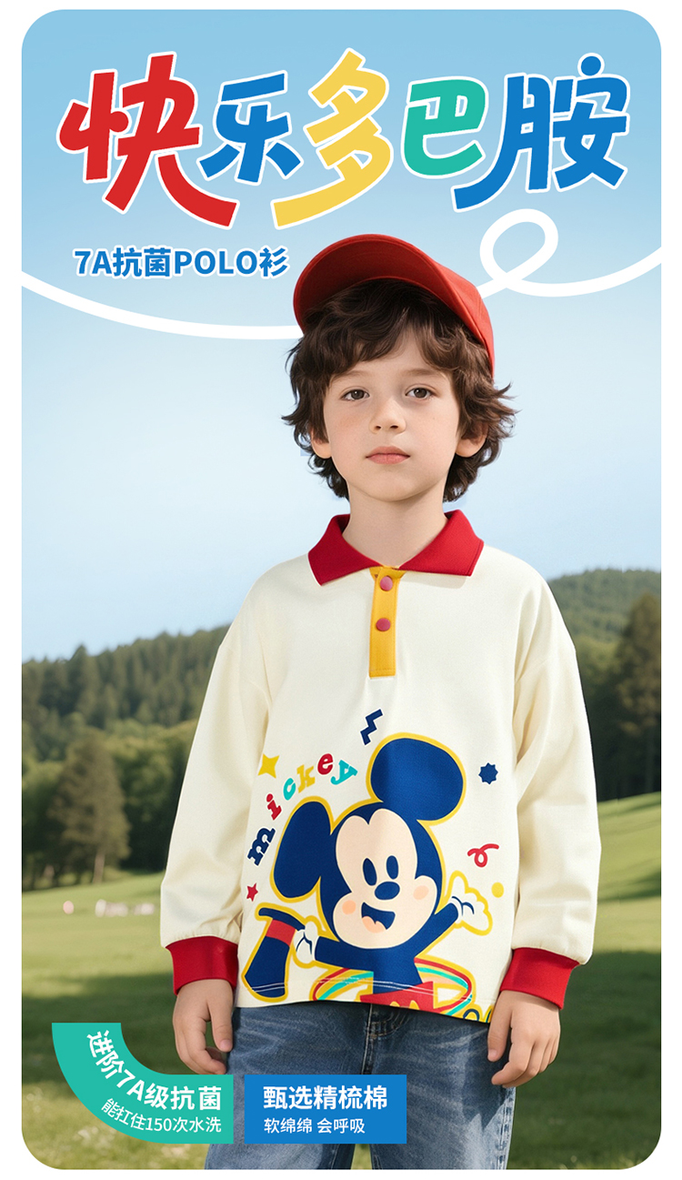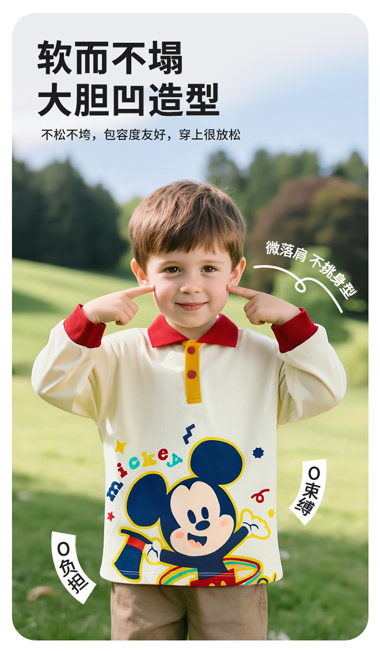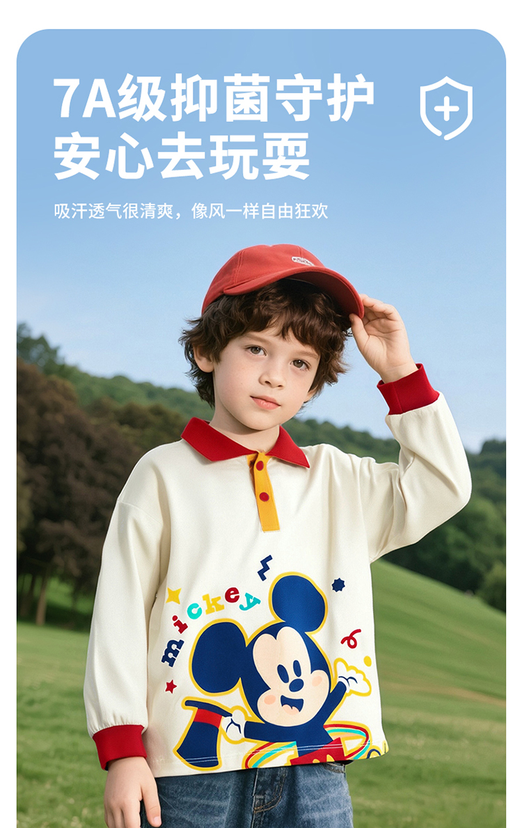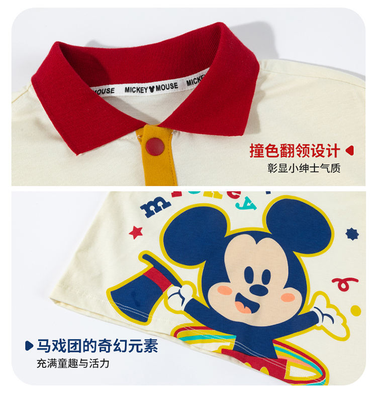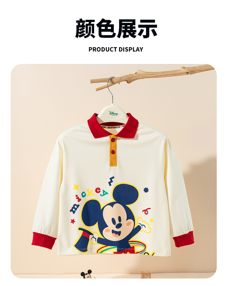 迪士尼童装男童秋季俏皮可爱米奇长袖T恤男宝宝撞色休闲POLO衫ZD3ES014