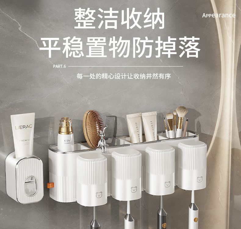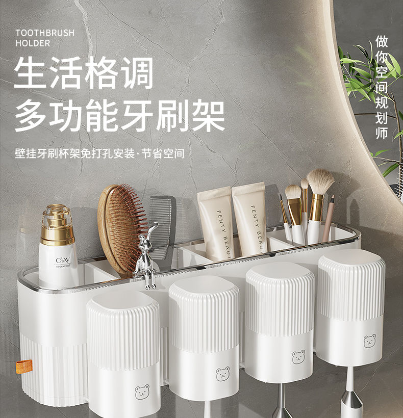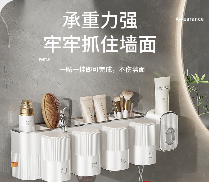 牙刷置物架免打孔刷牙漱口杯子卫生间挤牙膏神器牙刷杯套装壁挂式