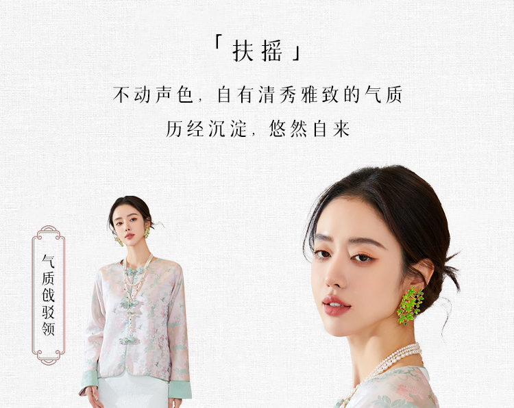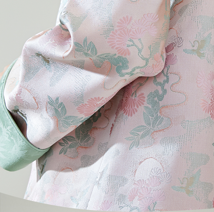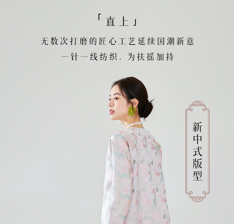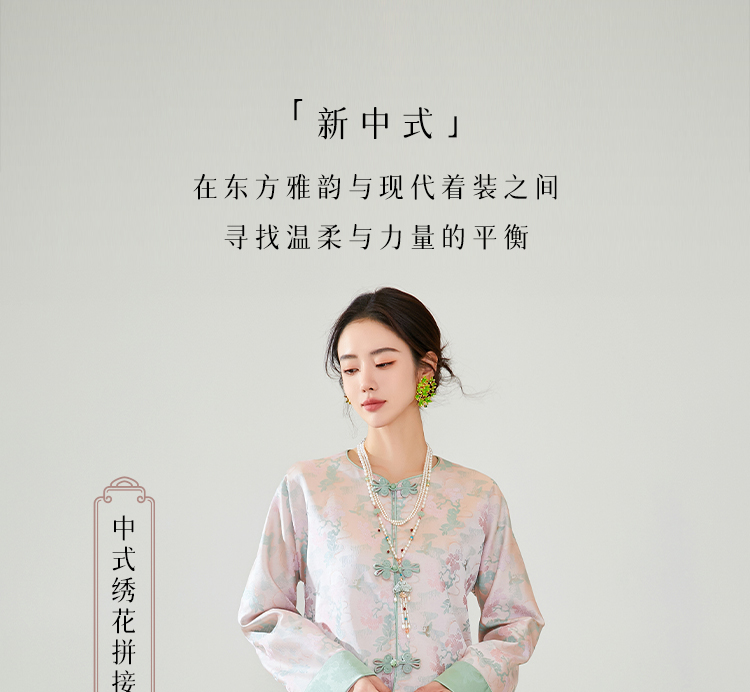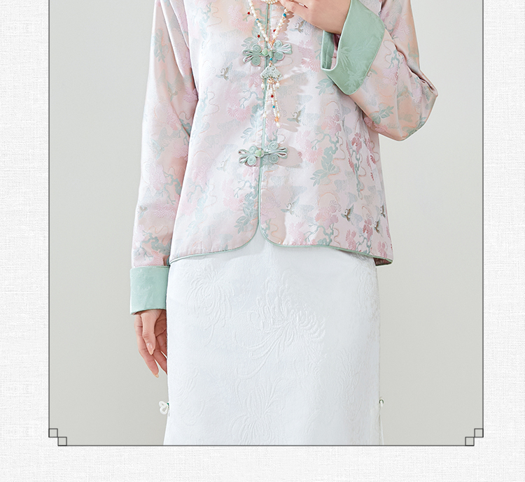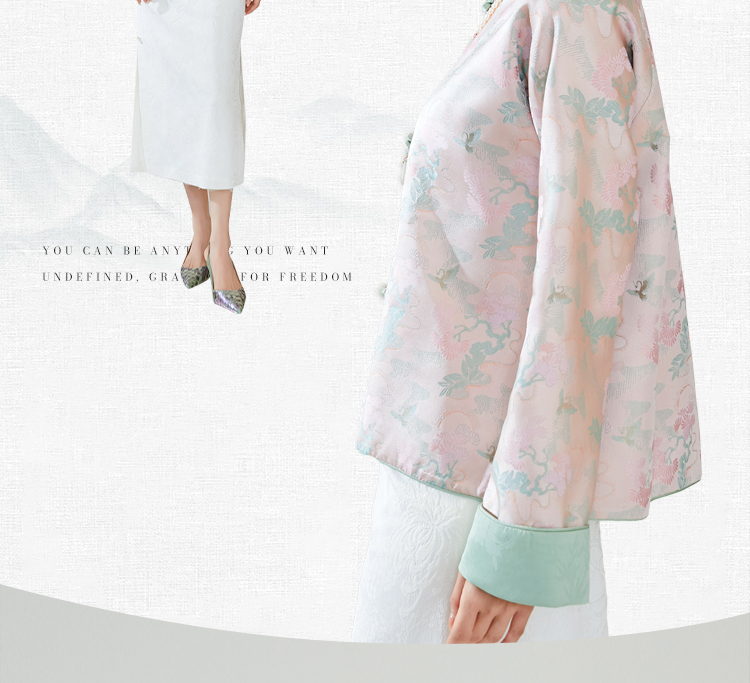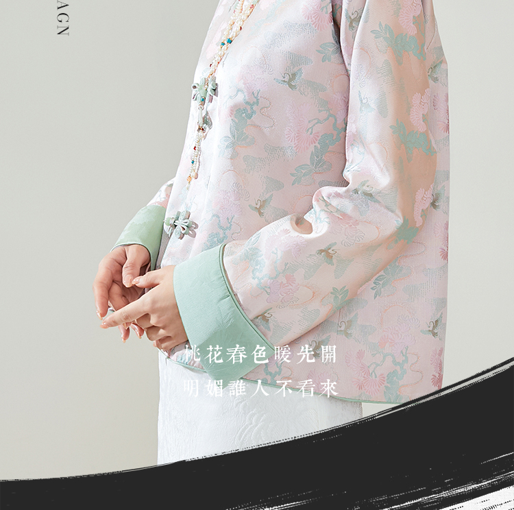 FUYAO扶摇 新中式短外套女粉色圆领提花上衣国风盘扣宋锦外套春季