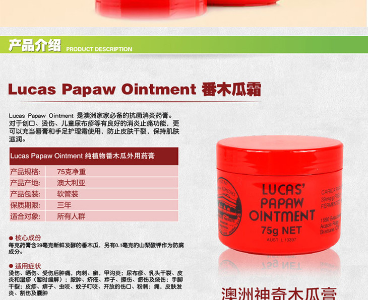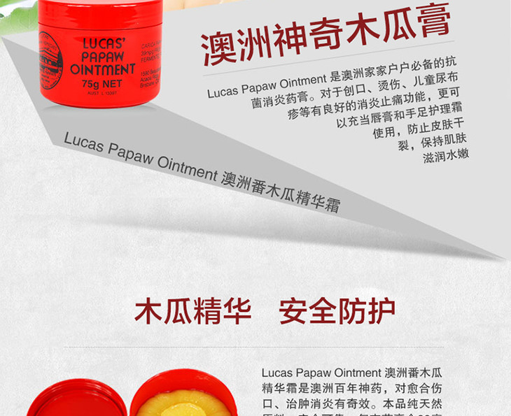 (永久下架)澳洲Lucas Papaw卢卡斯 木瓜膏 75g大瓶