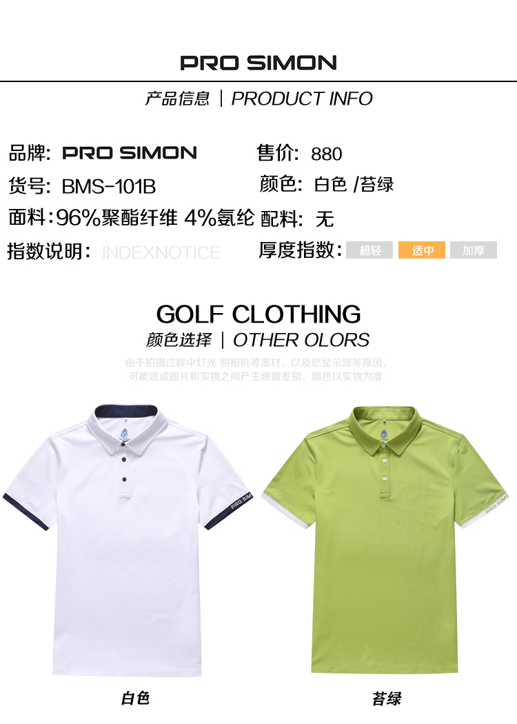 BMS-101B(PROSIMON高尔夫男款春夏短袖简约风翻领Polo衫)