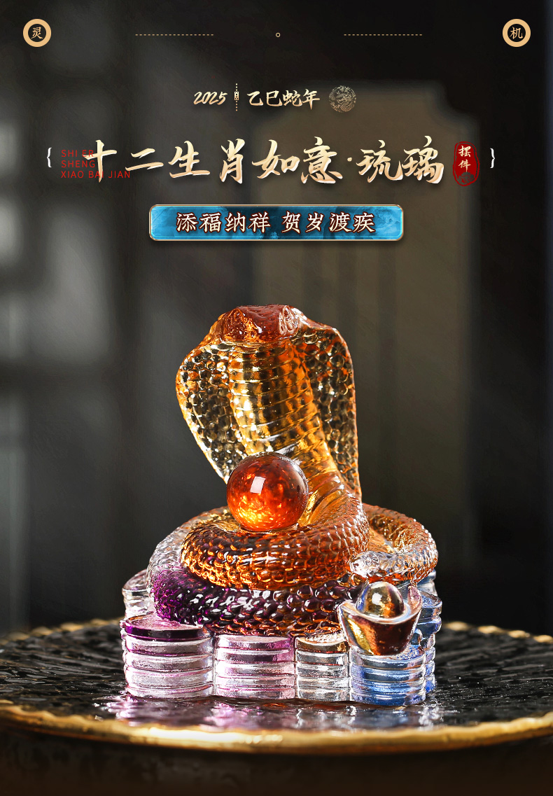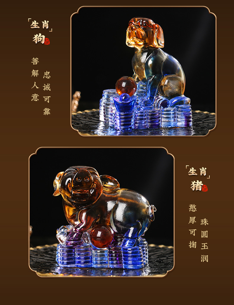 灵机生活馆十二生肖如意.琉璃摆件