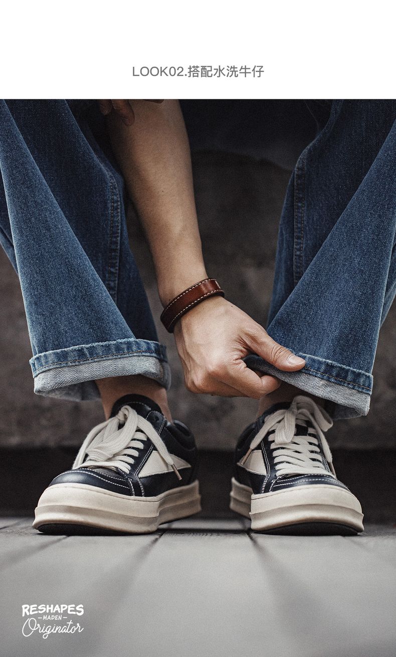 马登工装男鞋春季VIBE风板鞋小众设计厚底圆头皮鞋复古拼接休闲鞋