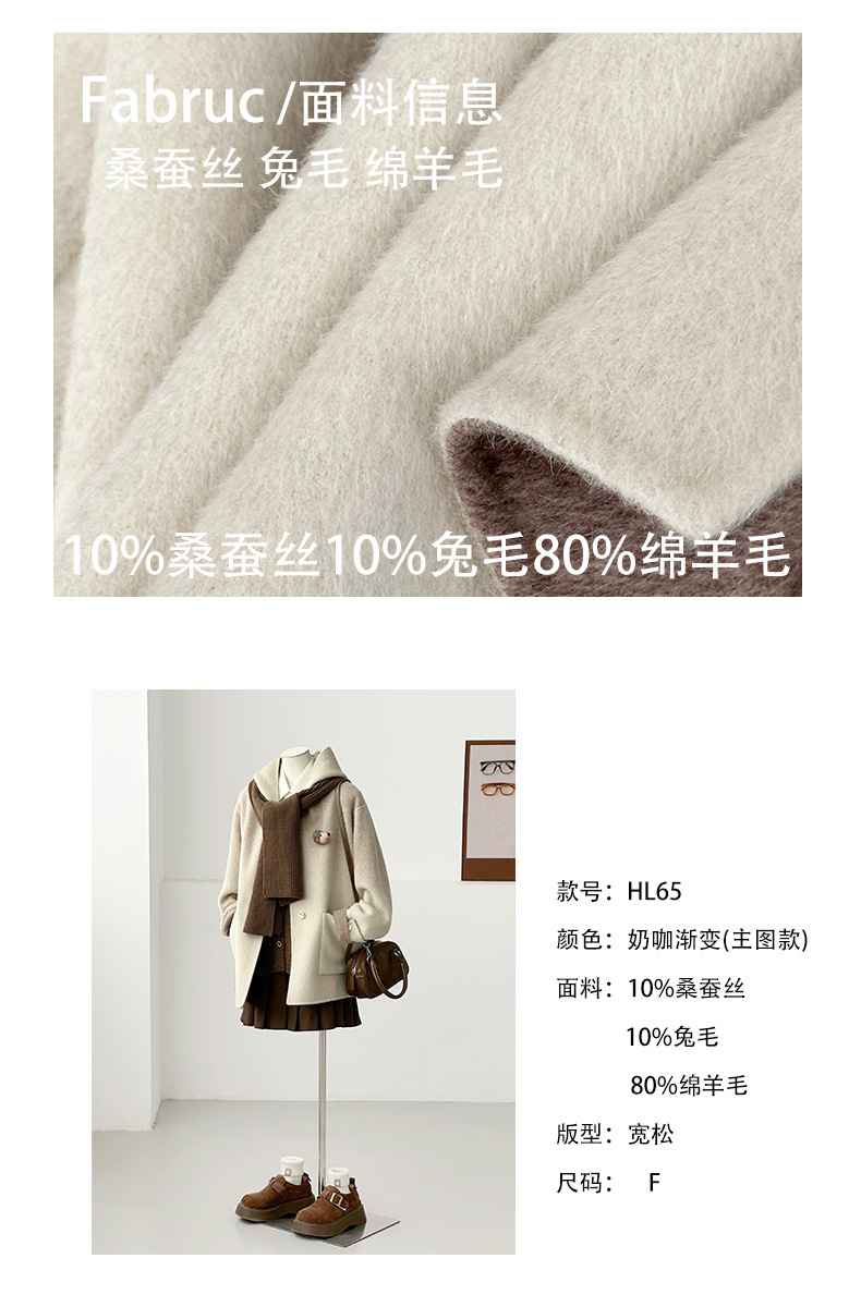 【柔米拿铁】2025设计感秋冬渐变色韩系百搭减龄学院连帽羊毛大衣! 商品图2