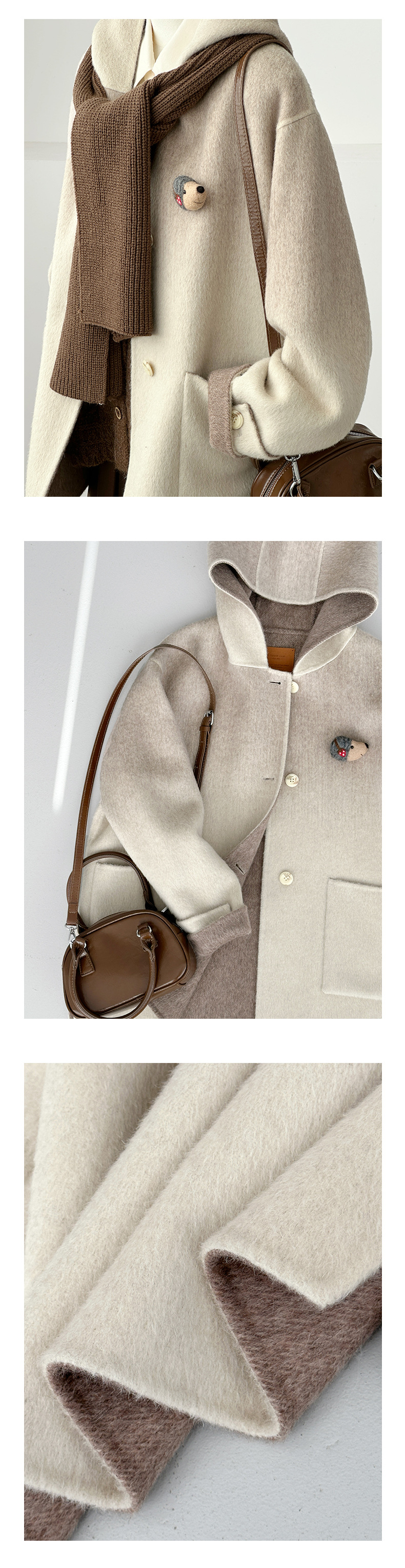 【柔米拿铁】2025设计感秋冬渐变色韩系百搭减龄学院连帽羊毛大衣! 商品图4