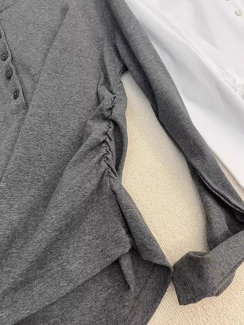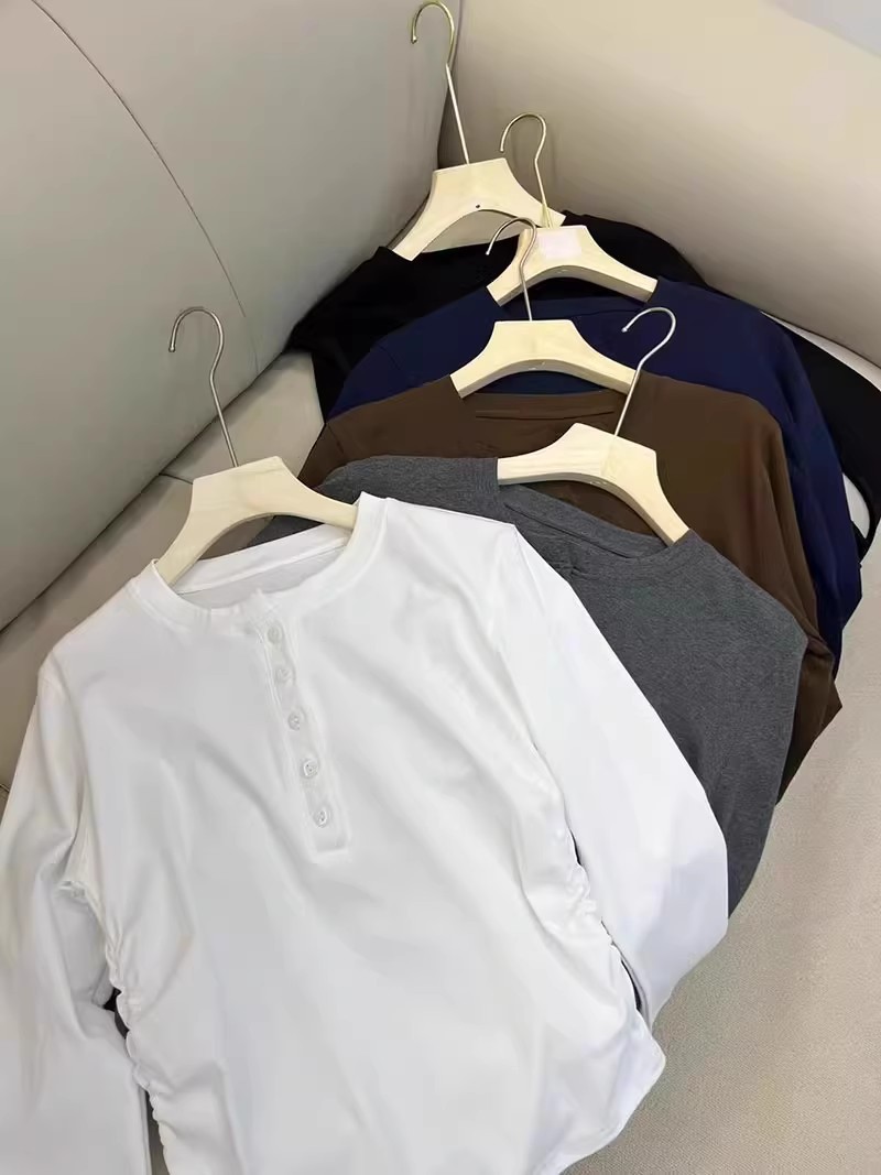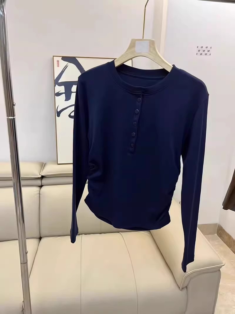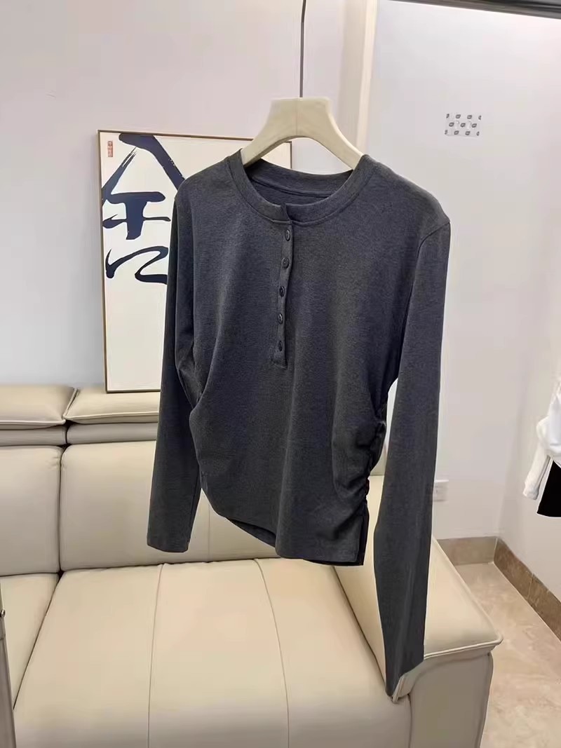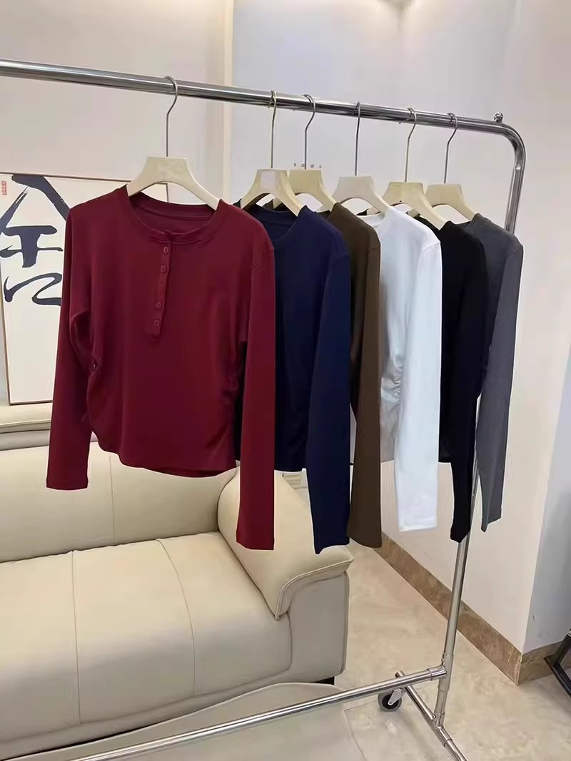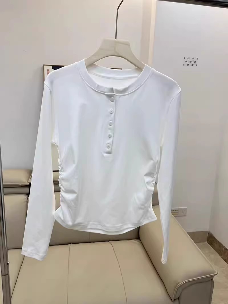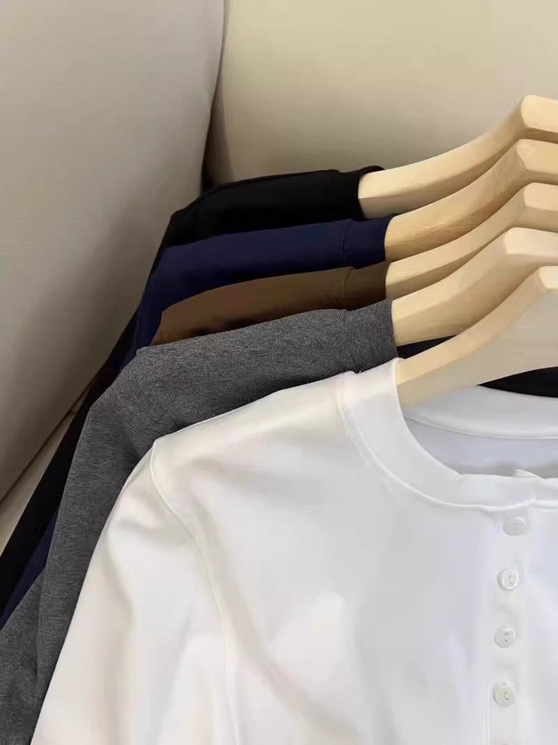 天给大家种草一件神奇的单品——LU风前开扣侧面打揽修身长T!