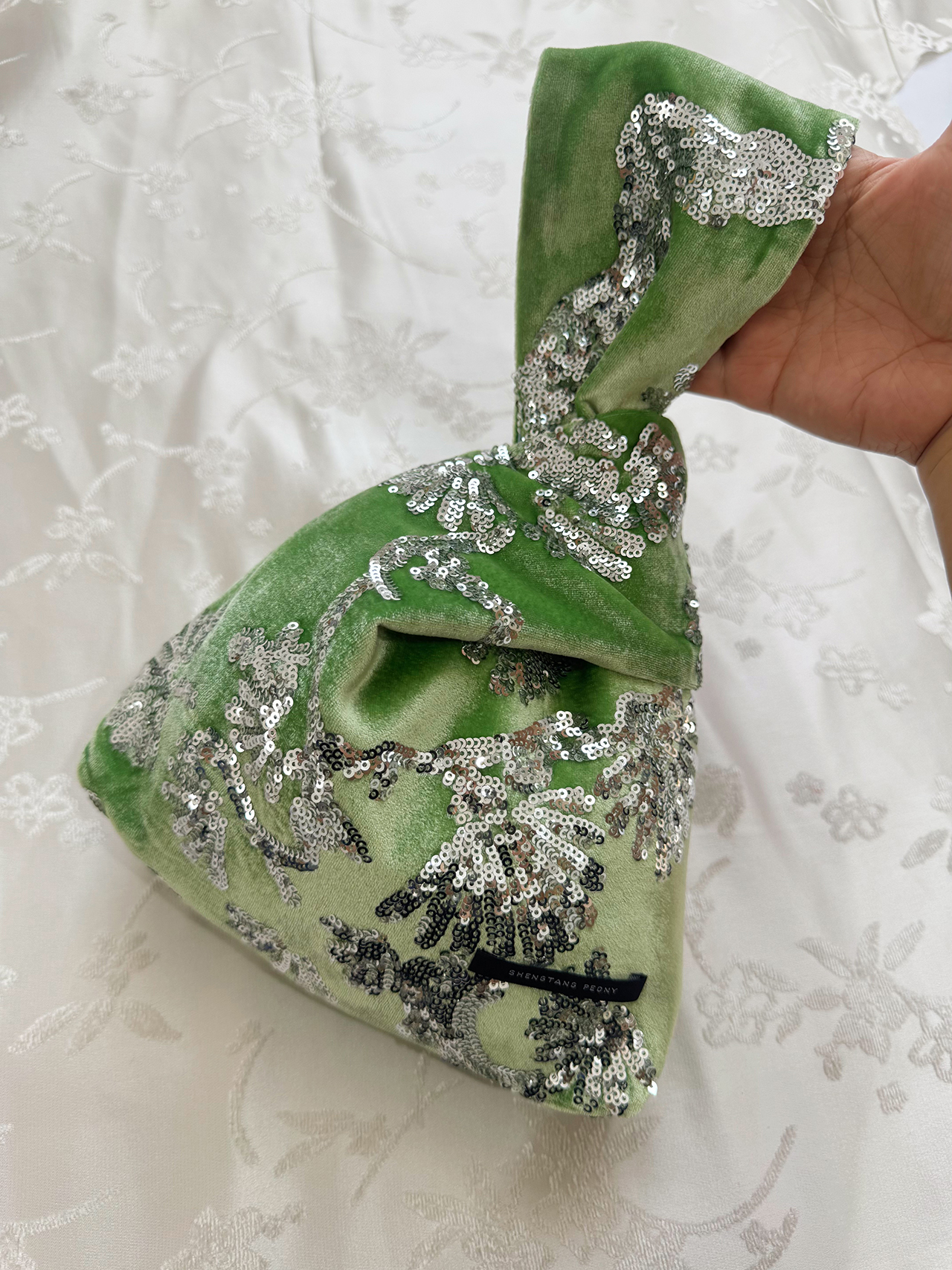 盛唐牡丹| 真丝丝绒串珠手拿包-绿色