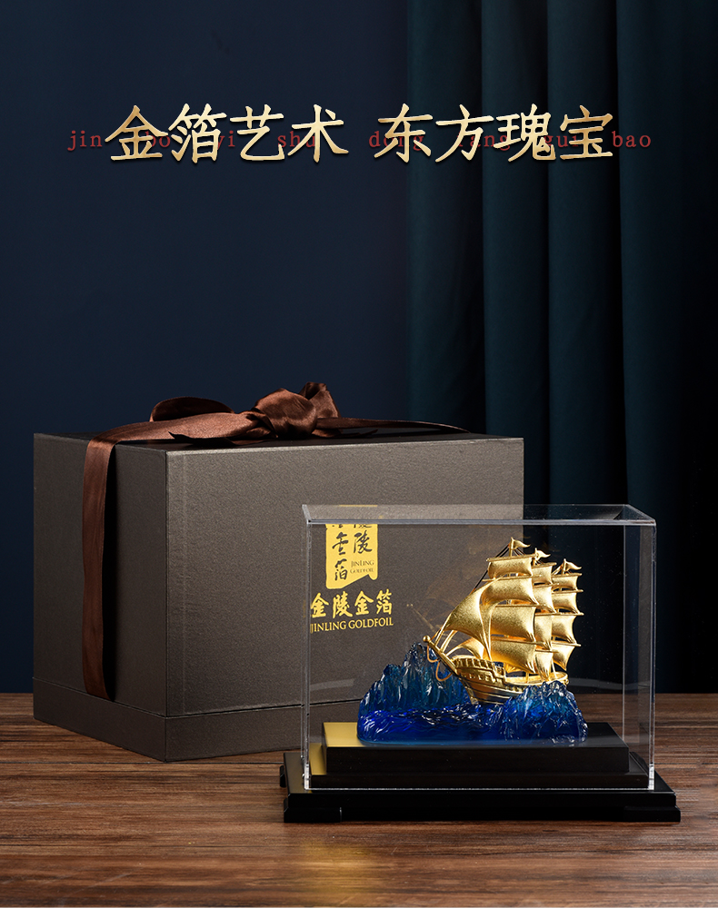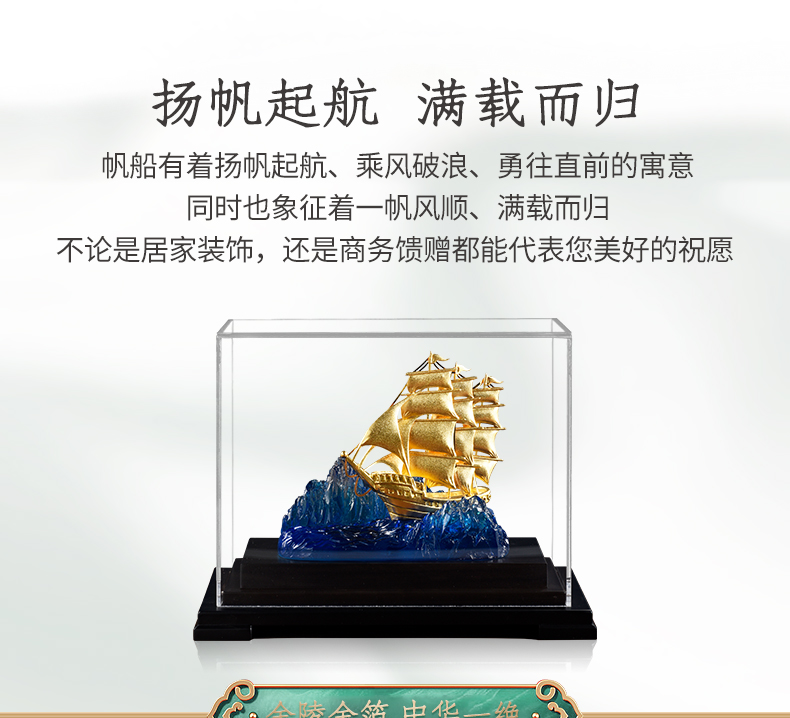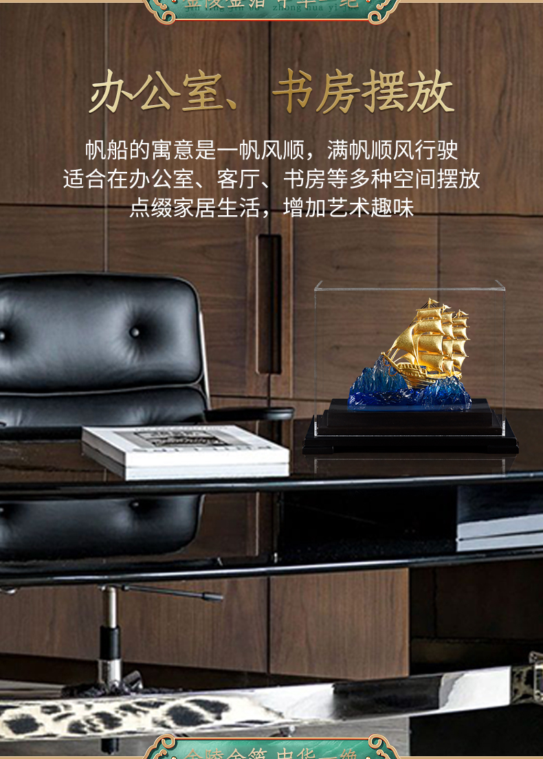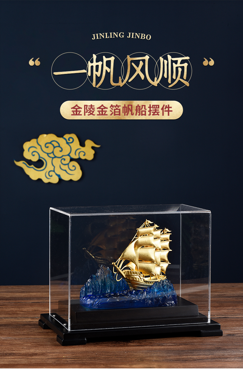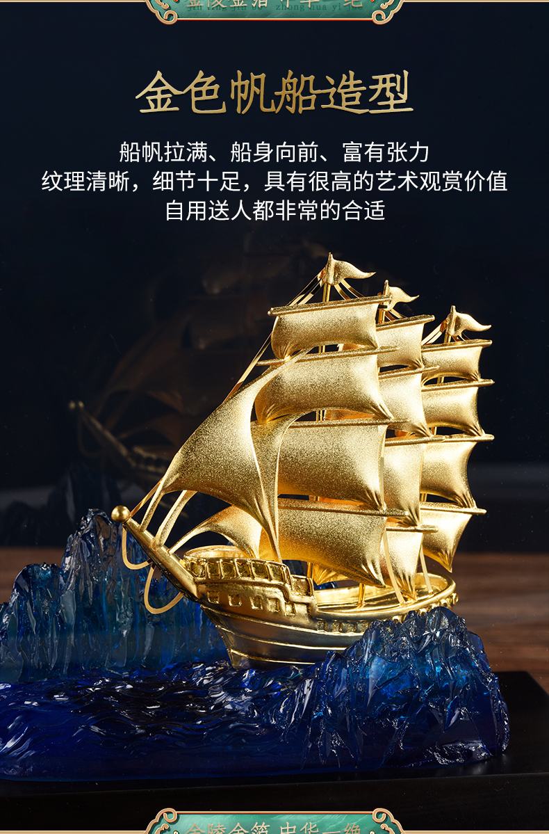 一帆风顺金箔帆船摆件一路高升礼物办公室书房送领导升迁商务礼品