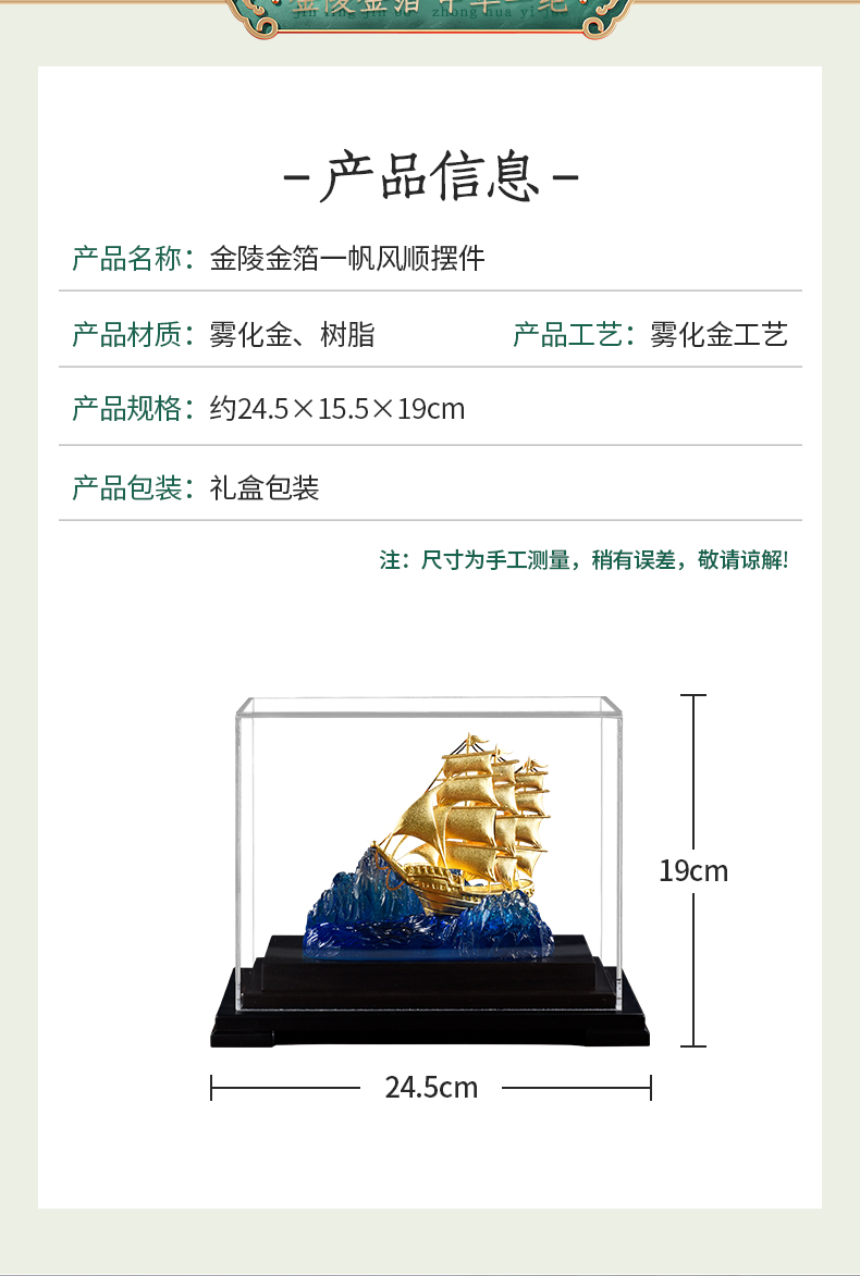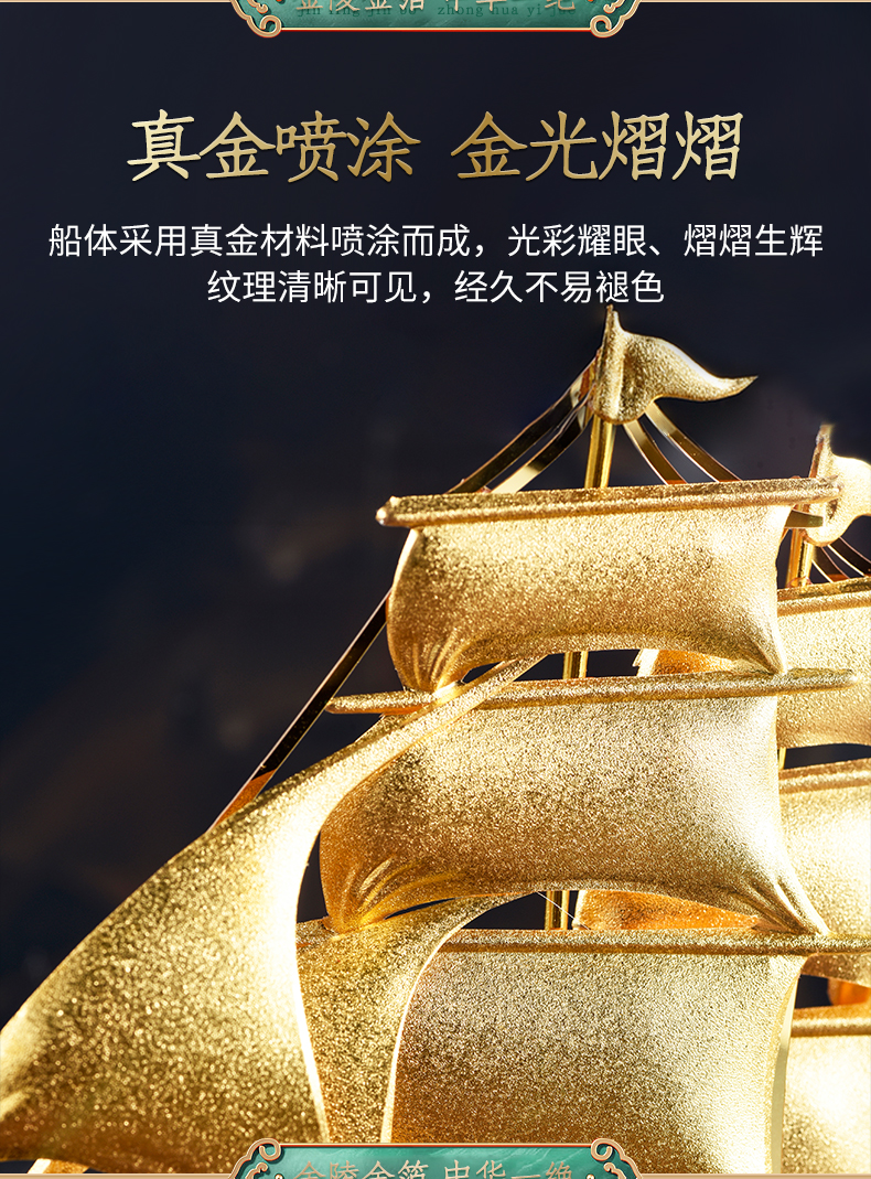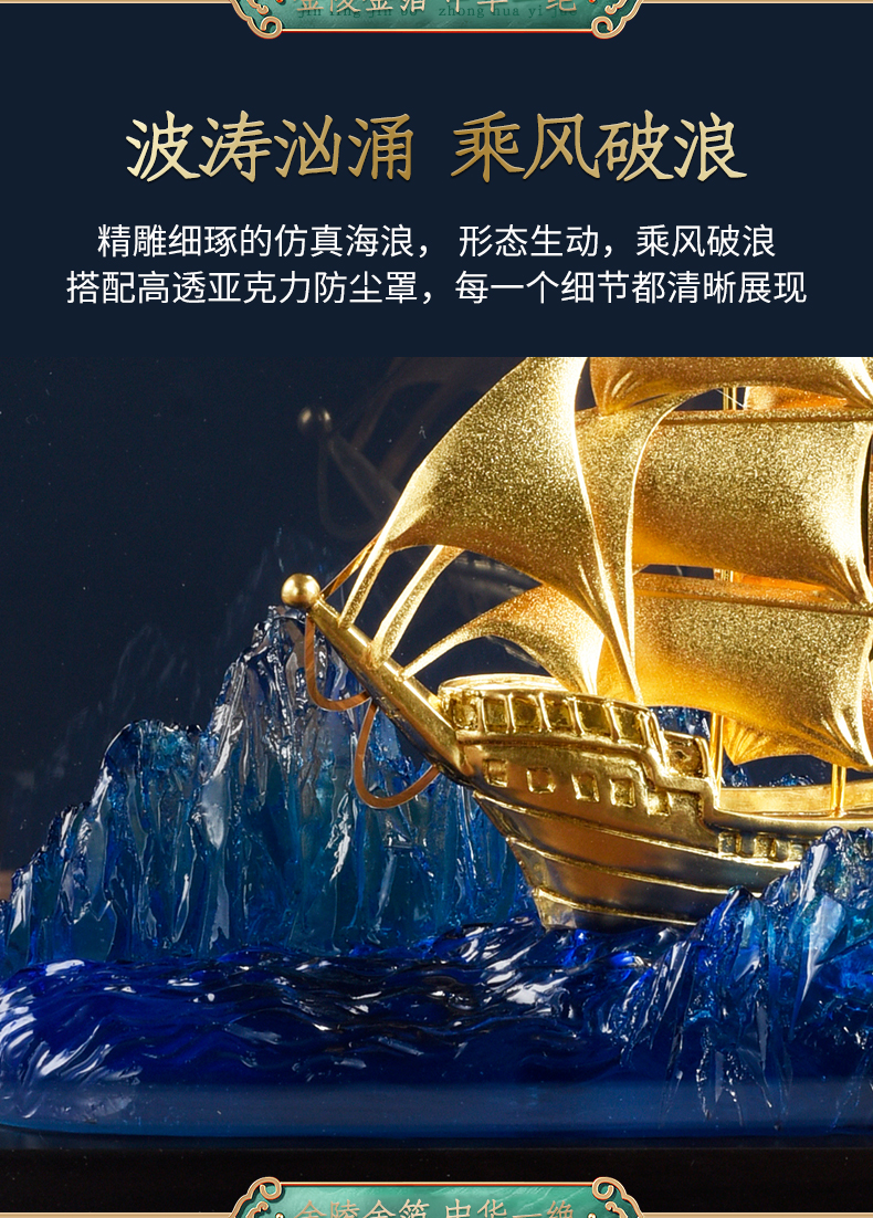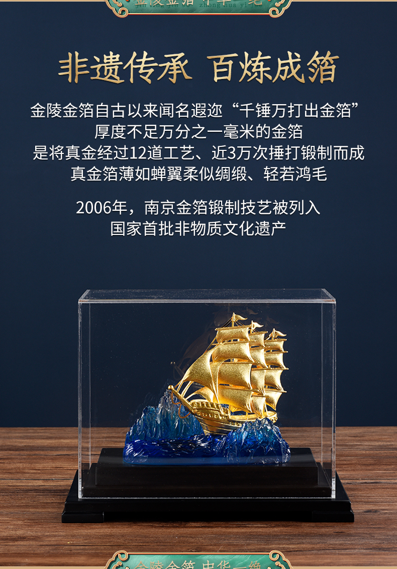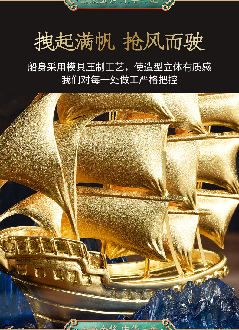 一帆风顺金箔帆船摆件一路高升礼物办公室书房送领导升迁商务礼品