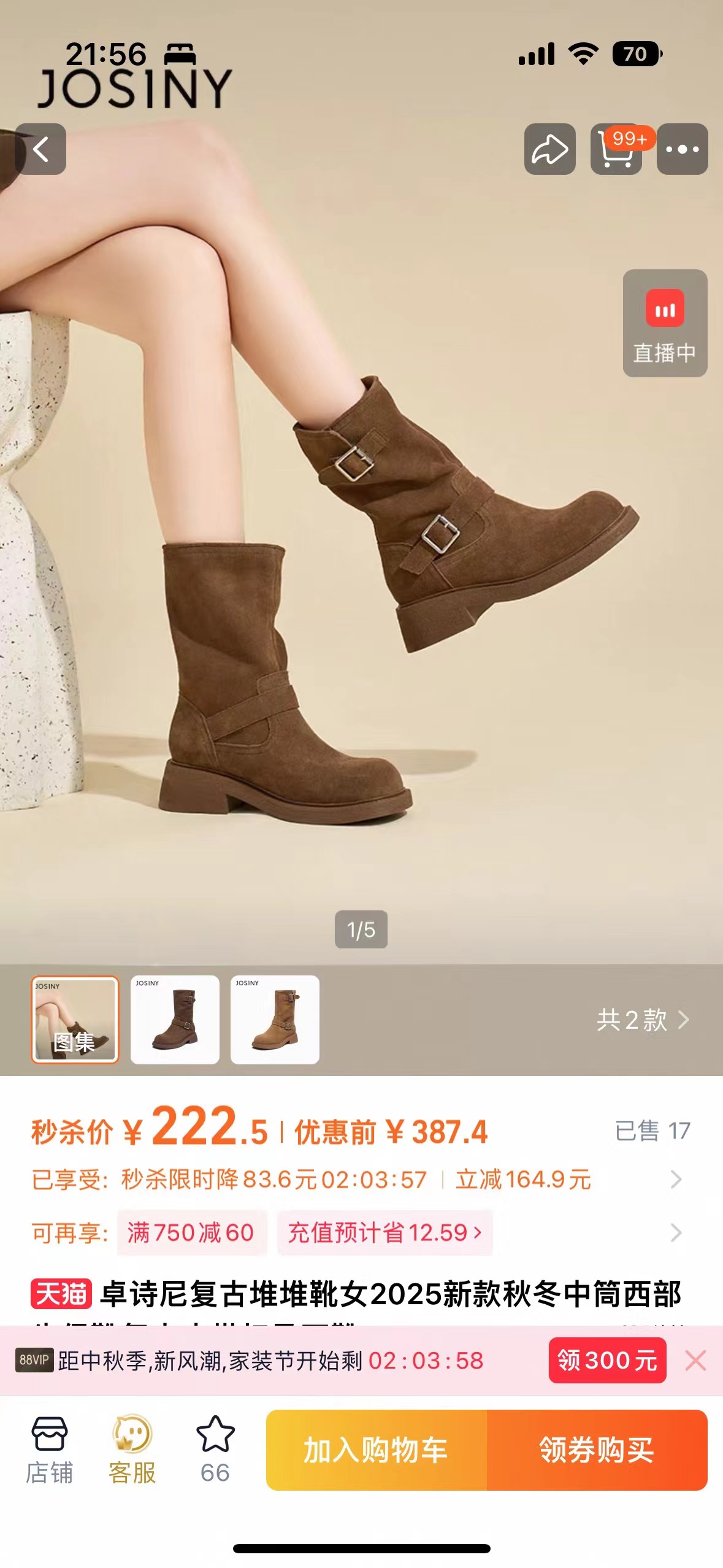 复古堆堆靴女2025新款秋冬中筒西部牛仔靴复古皮带扣马丁靴