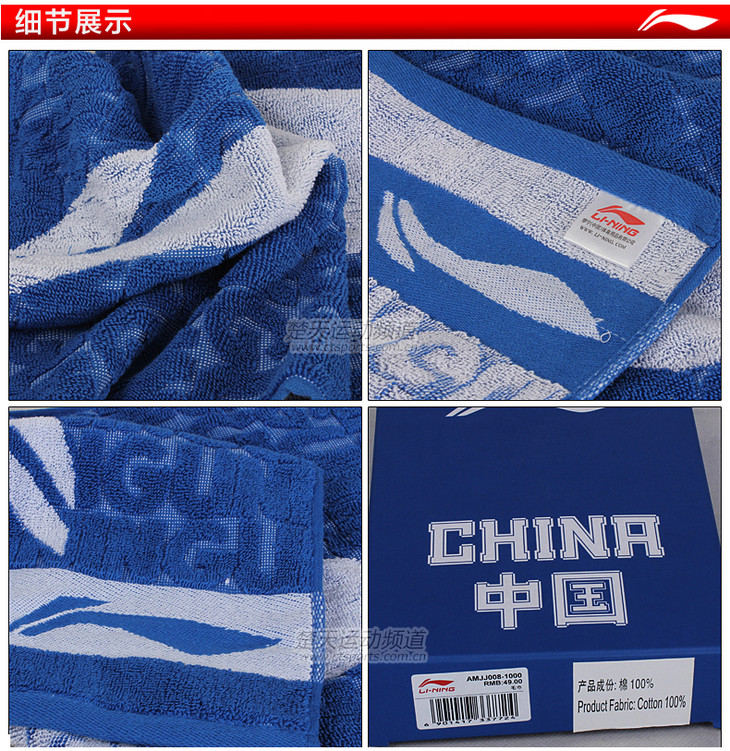 李宁运动毛巾 打球必备吸汗毛巾 纯棉材质 AMJJ014