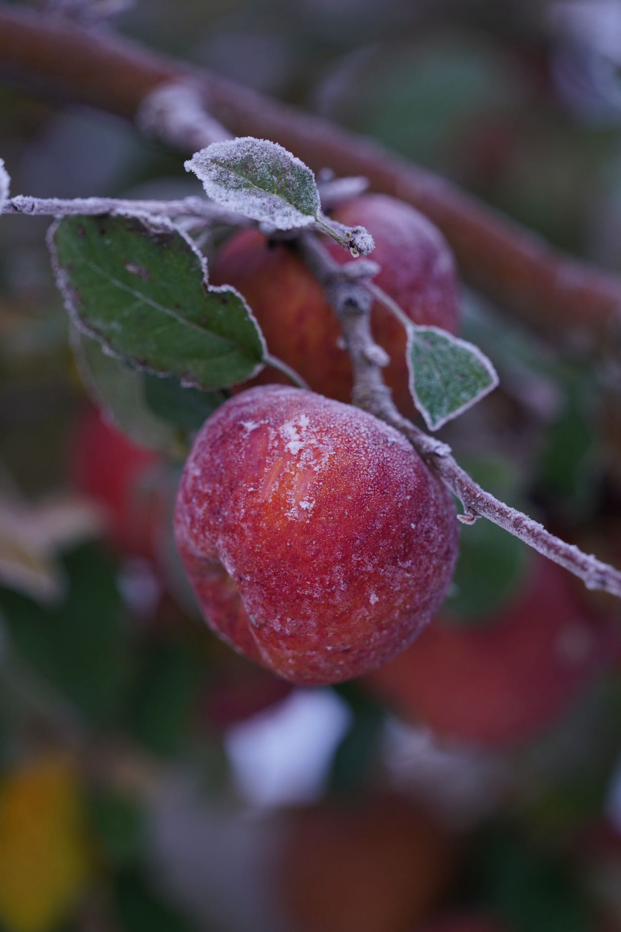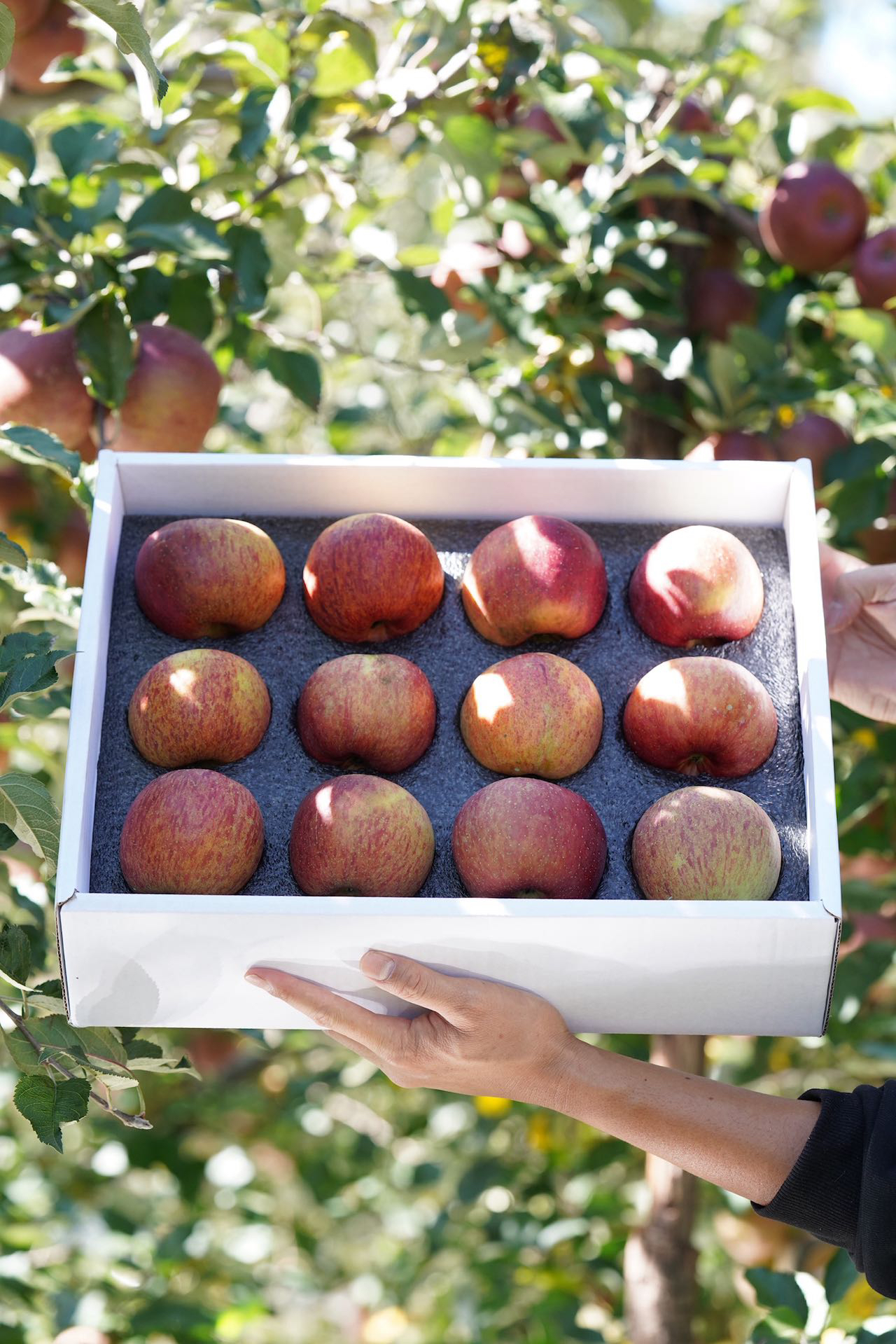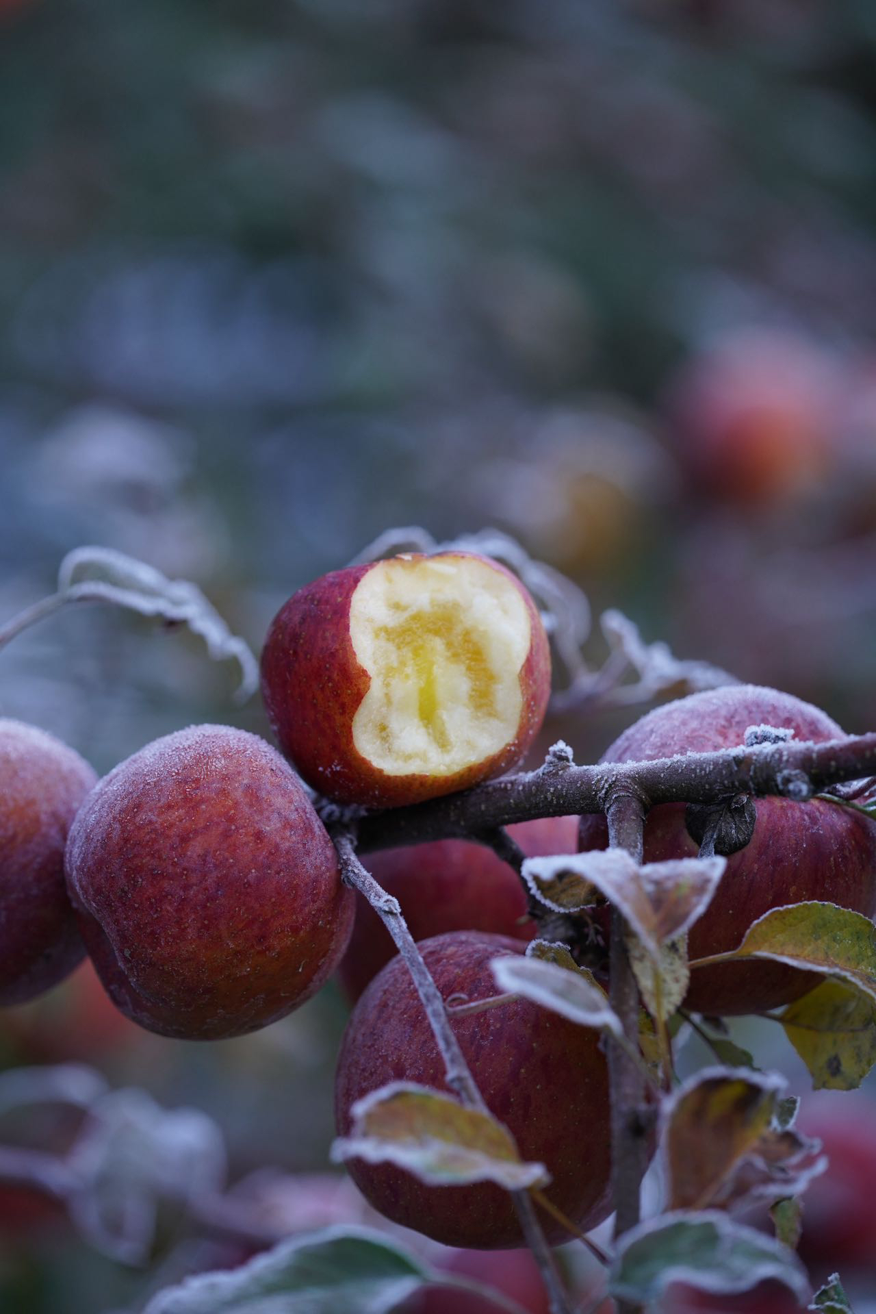 晚熟晚收,不时不采。小产区农耕精品, 相比其他大产区上市更晚,生长周期更长, 每年的霜降日开始监测果园降雨量及降霜量,( 需经历5-7个降霜日)立冬开始陆续采摘。 经历降霜的苹果会增加更多的次果率和落果率, 但口感风味会更浓郁, 糖心更多。