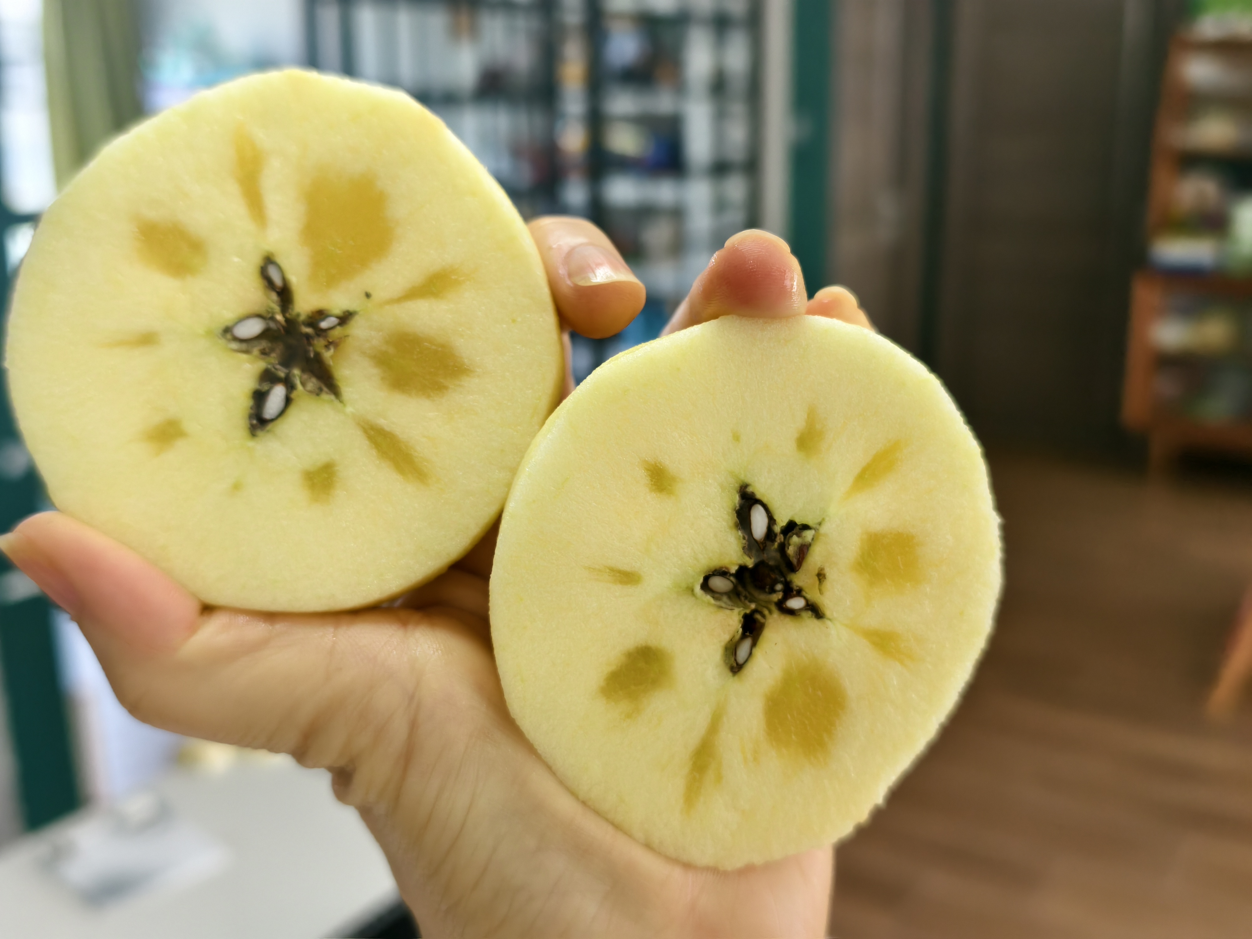 苹果的冰糖心每颗情况都有不同,有些多一些有些少一些属于正常现象哈!
