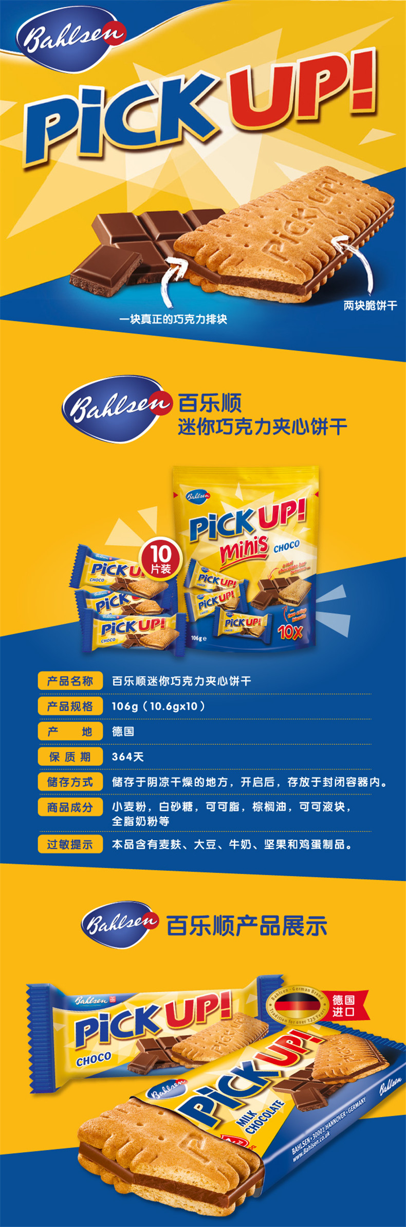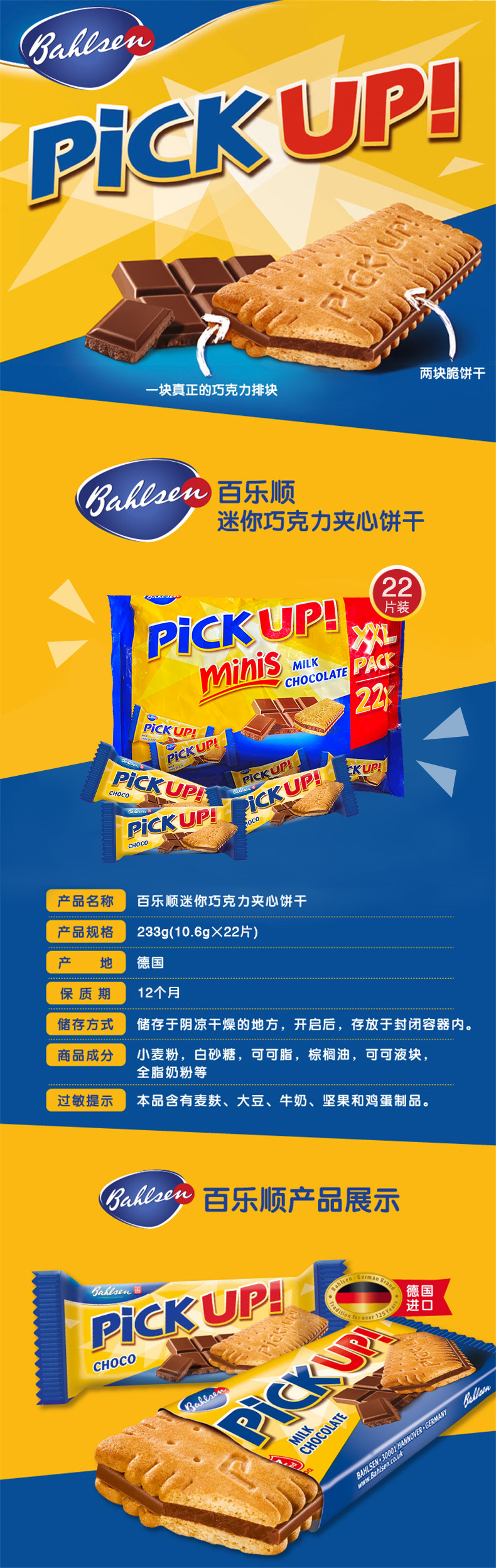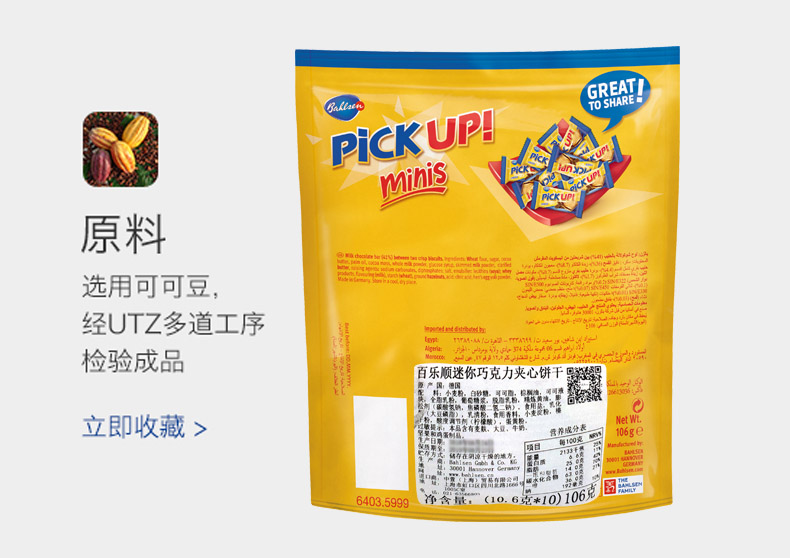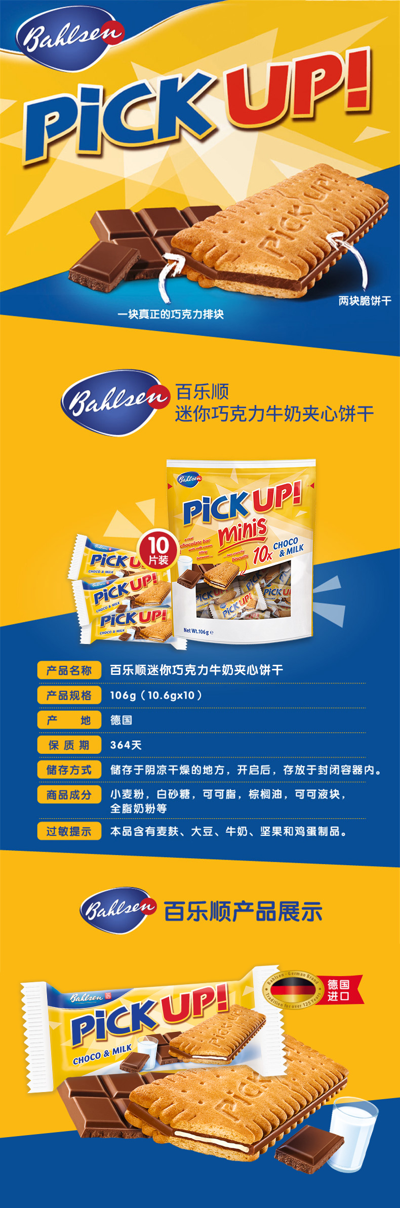 德国进口百乐顺巧克力夹心饼干pickup独立小包装106g
