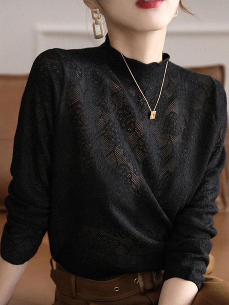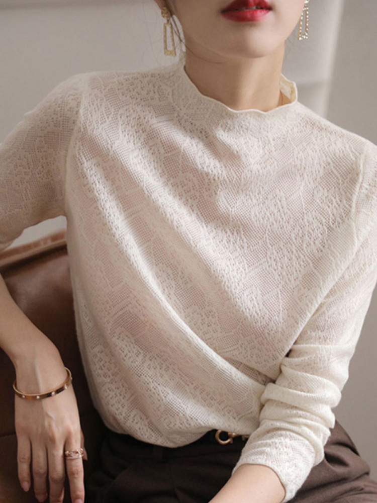 【慵懒温婉 唯美过冬】秋新款设计感小众针织衫秋季洋气薄款蕾丝打底衫气质上衣女长袖