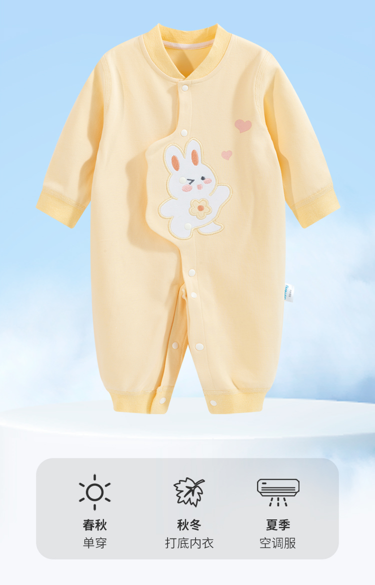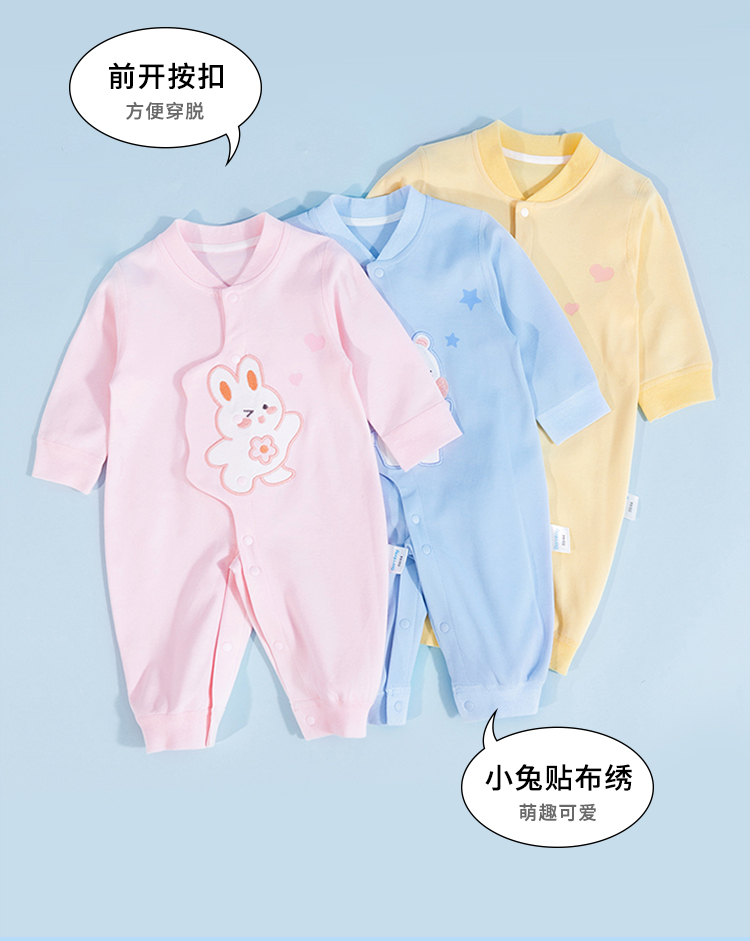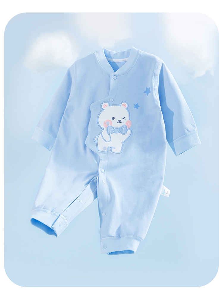 贝贝怡新生婴儿连体衣服春季休闲纯棉婴幼儿哈衣爬服宝宝睡衣夏装231L2029