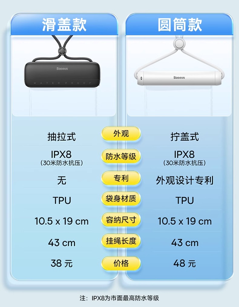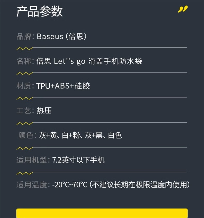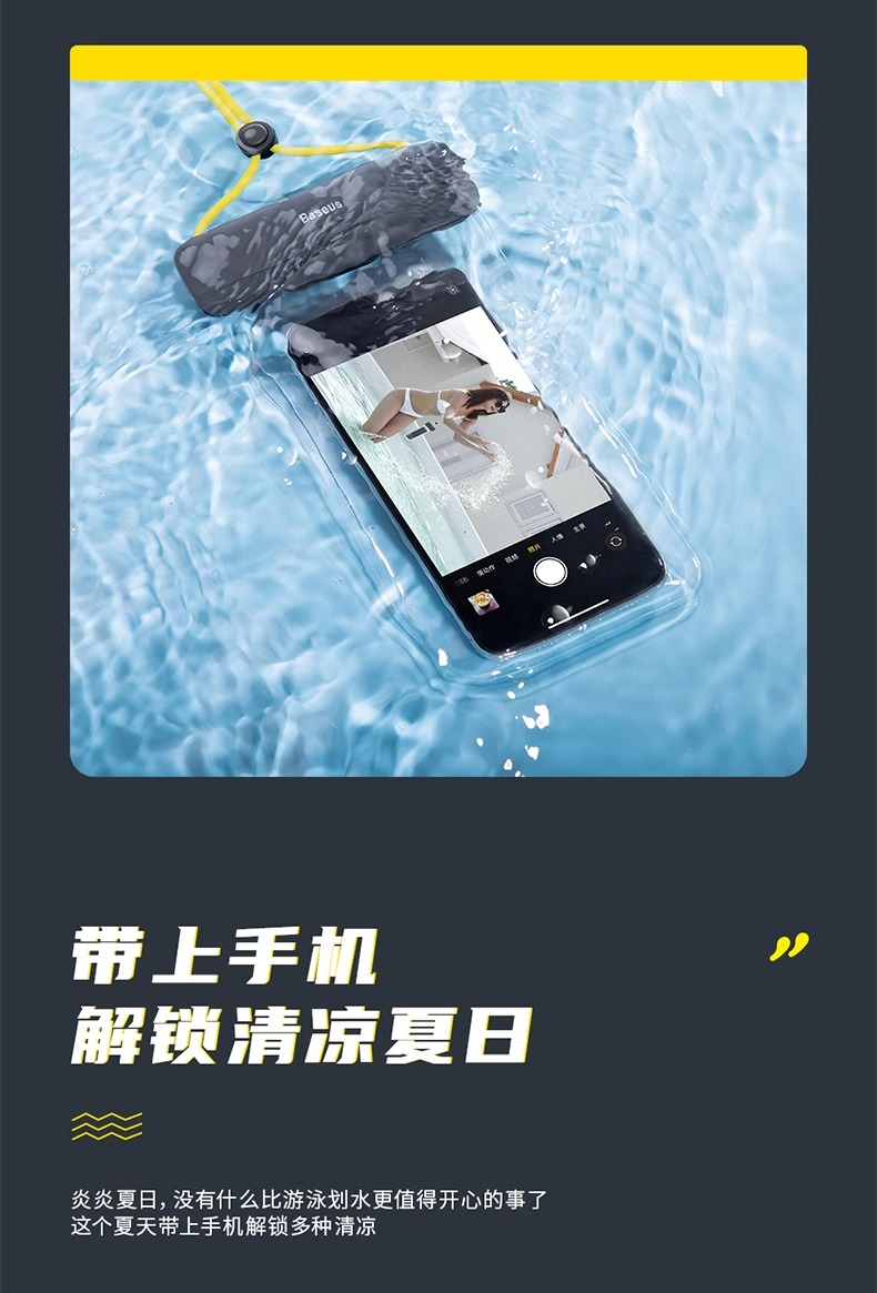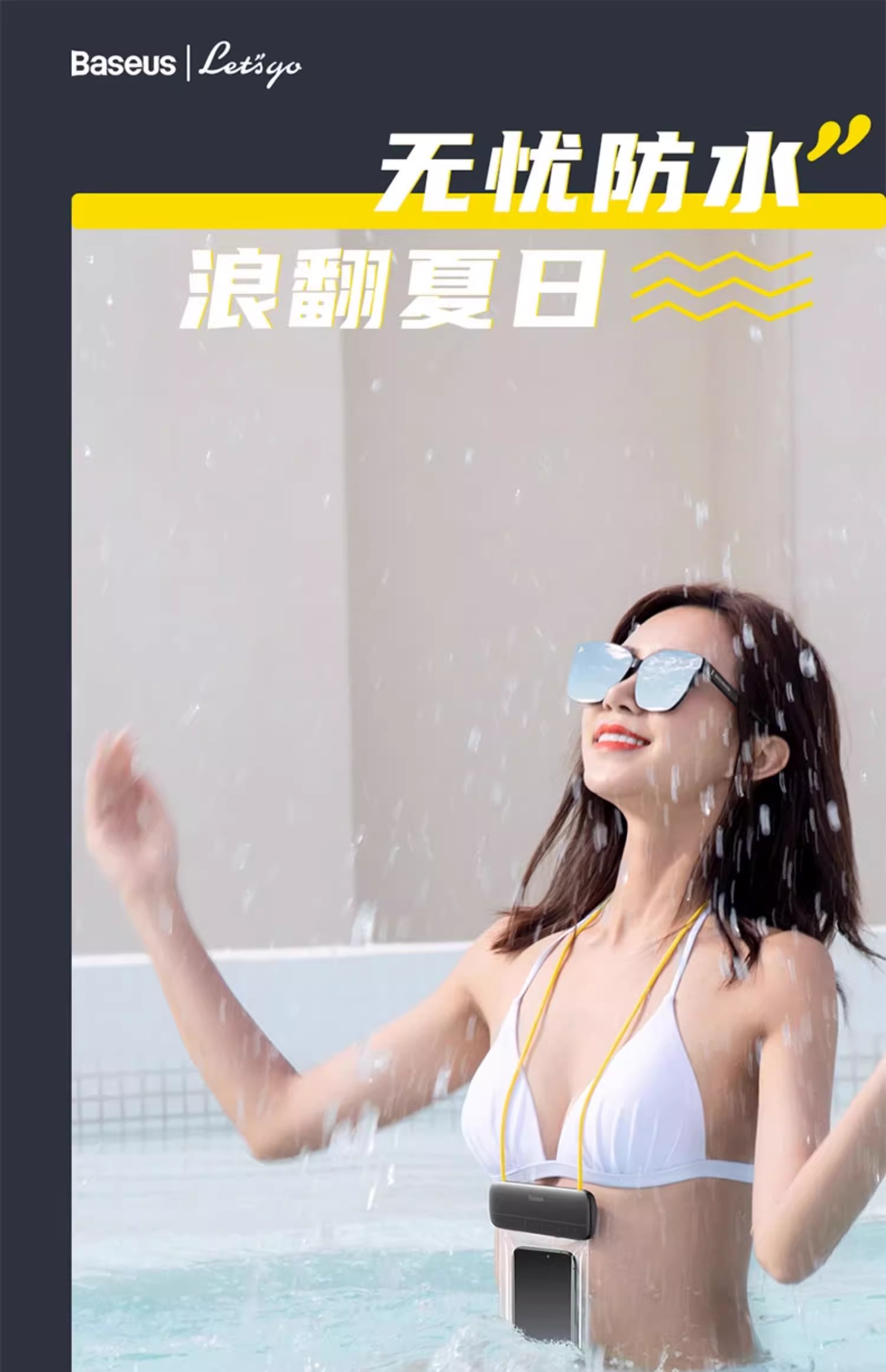 倍思 手机防水袋可触屏游泳漂流装备浮潜水上乐园水下拍照防水套