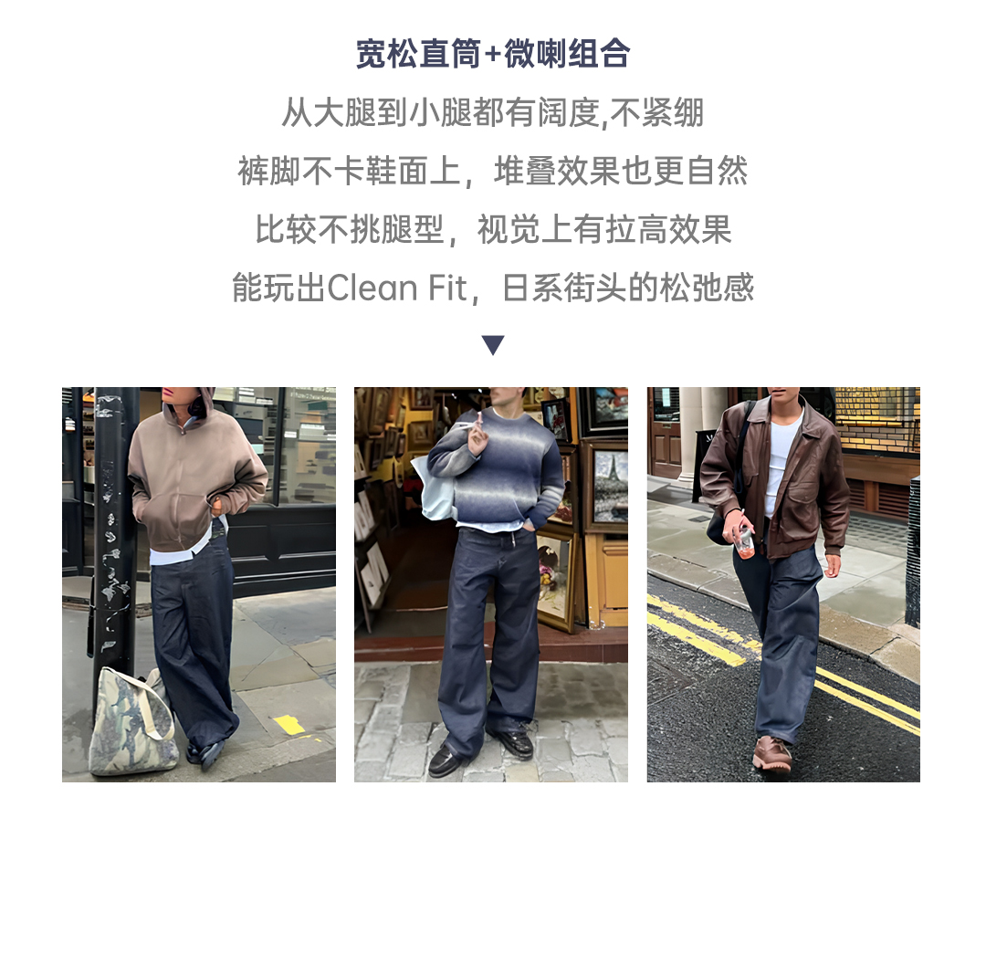 马登工装美式复古微喇阔腿直筒牛仔裤松弛垂感深蓝色赤耳原牛男秋