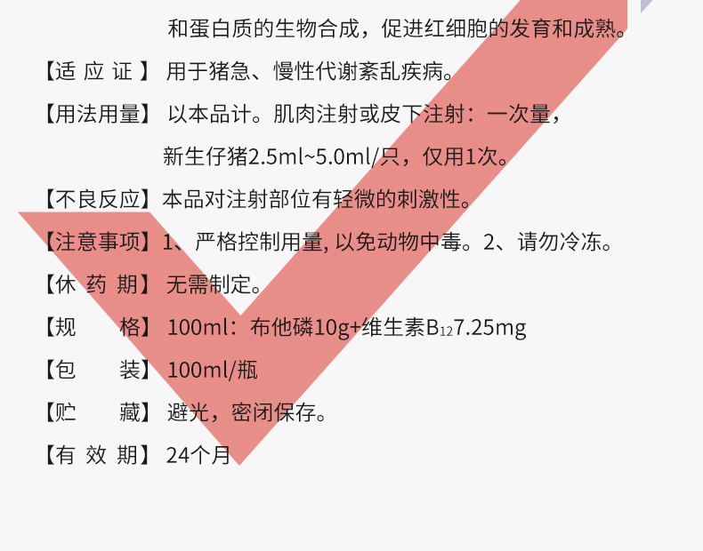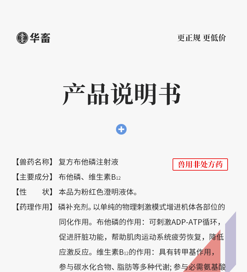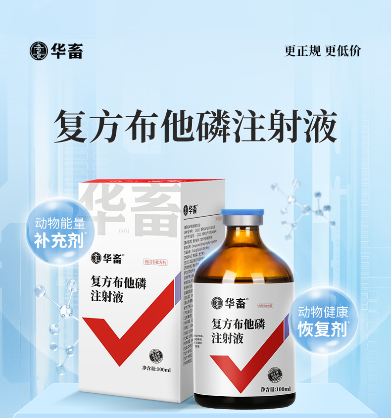 【社群专享】华畜复方布他磷注射液100ml 动物能量补充剂 维生素B12
