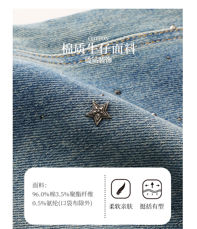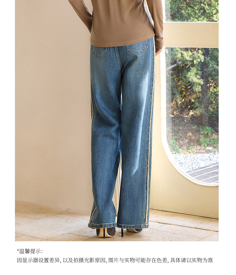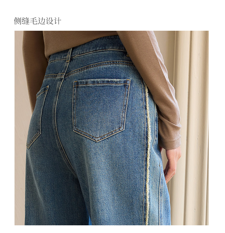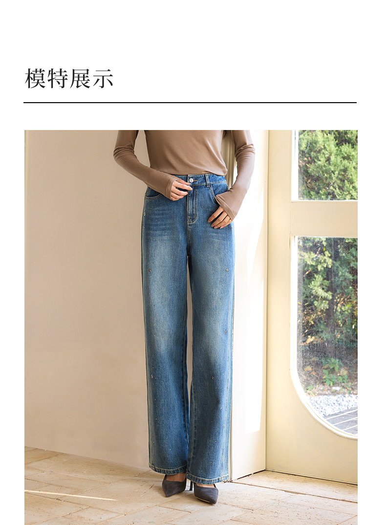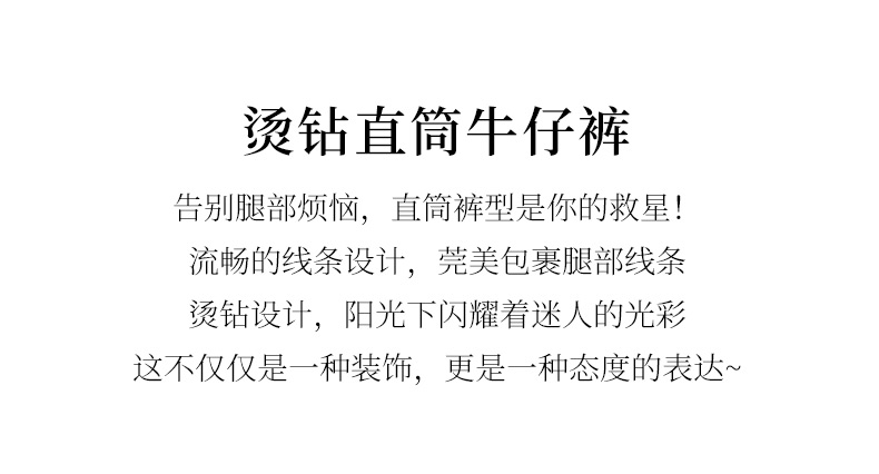 玳莎烫钻宽松牛仔裤女2025年春季新款侧缝毛边时尚百搭显瘦直筒裤 FA36301