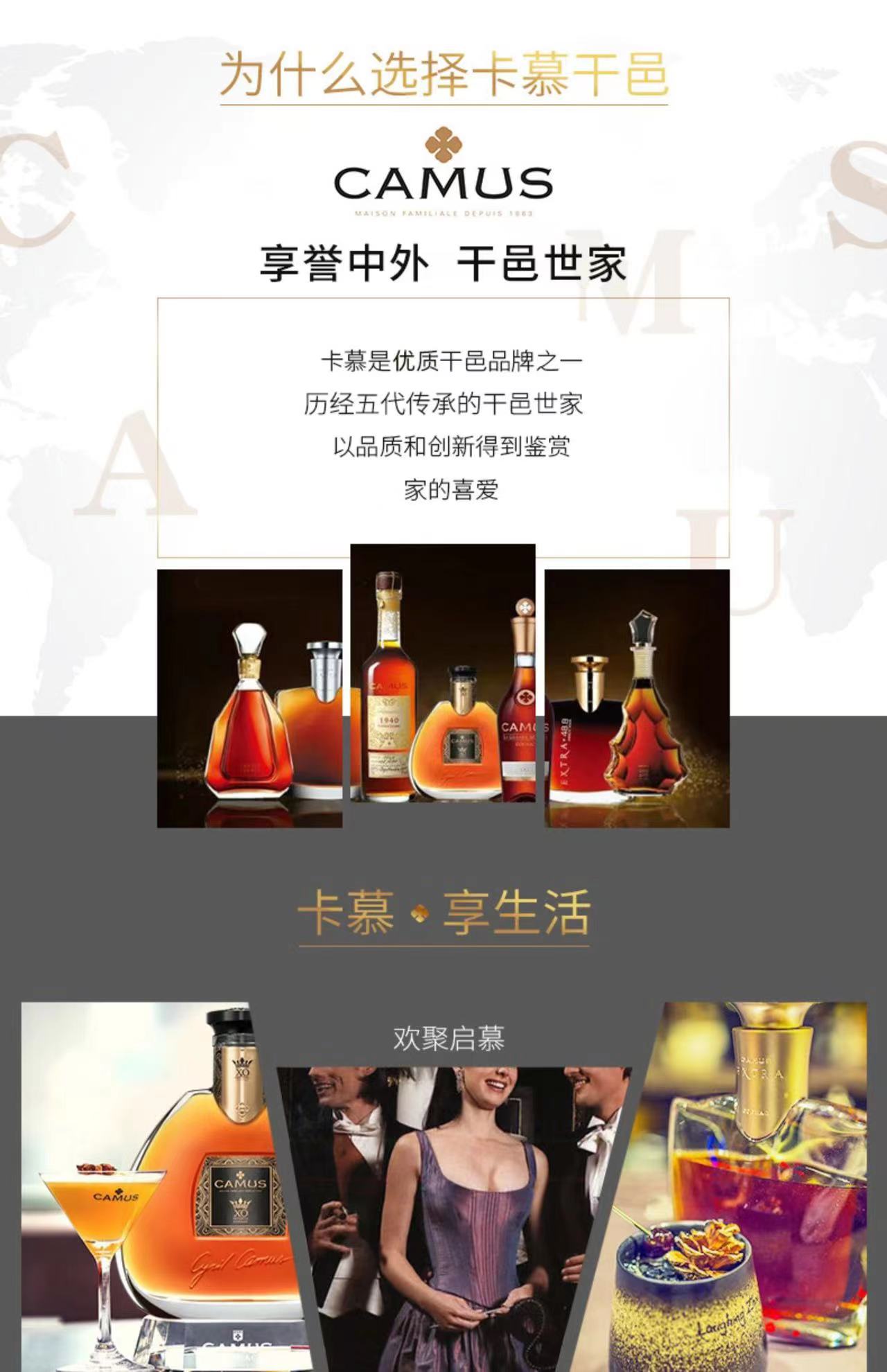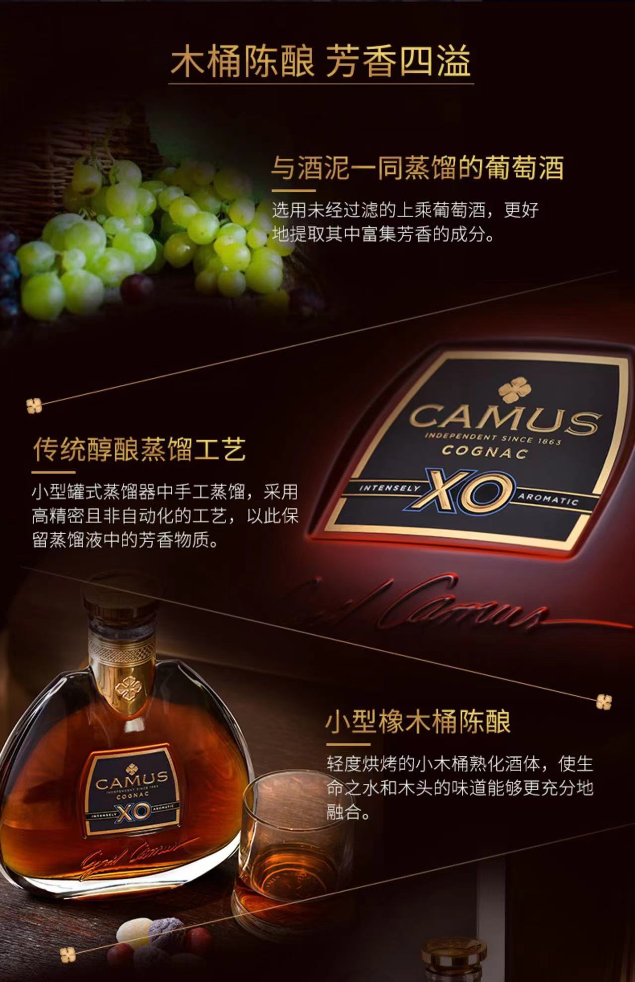 卡慕(CAMUS) 经典XO干邑白兰地 40度 700ml 进口洋酒