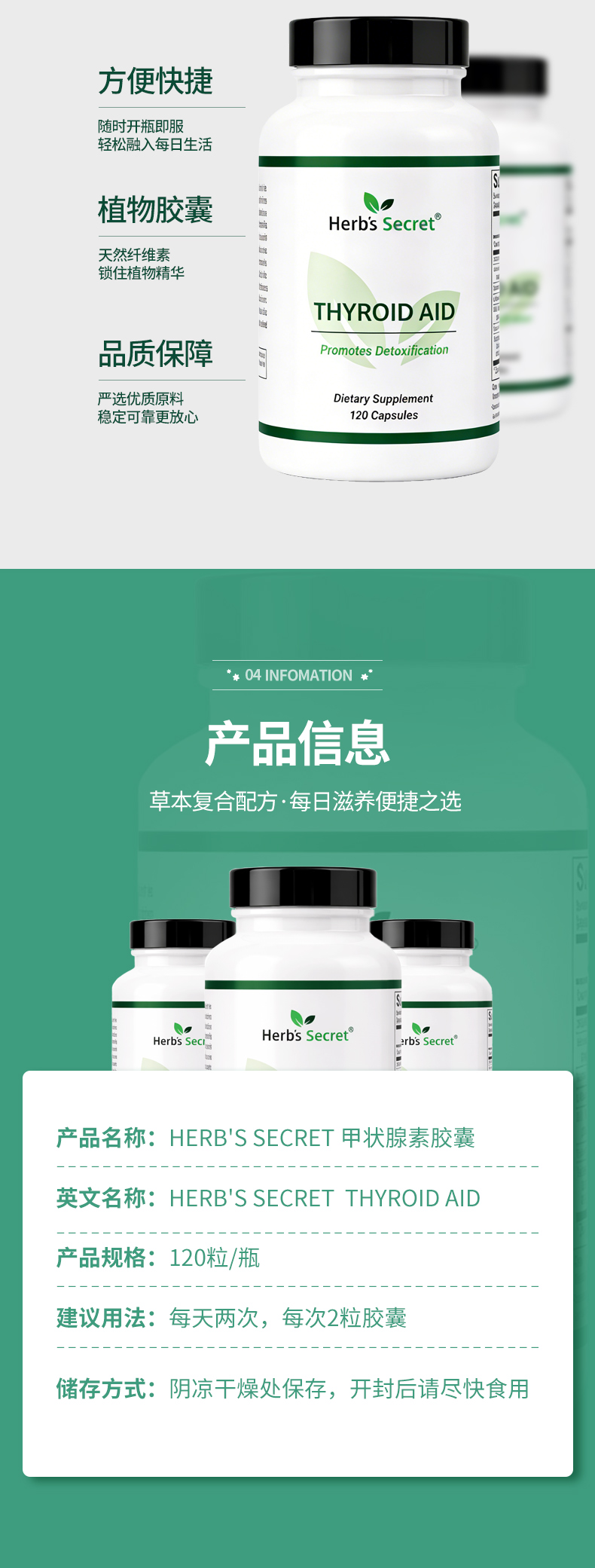 Herb's Secret THYROID AID甲状腺素胶囊120粒