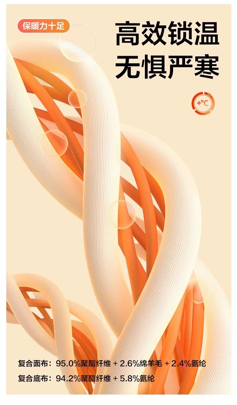 复合面布:聚酯纤维95.0%+绵羊毛2.6%+氨纶2.4%