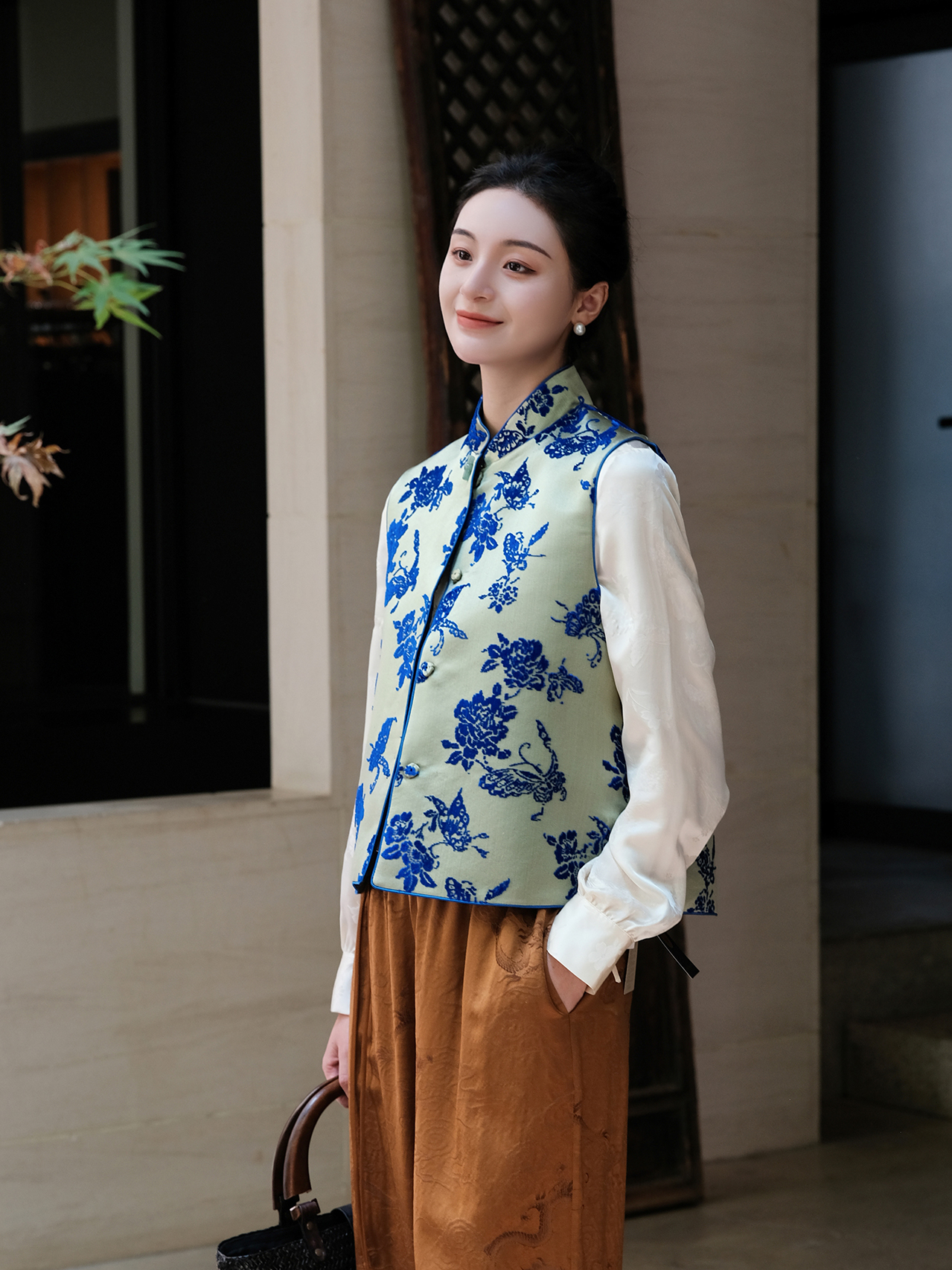 盛唐牡丹 |真丝提花立领马甲 (不夹棉)