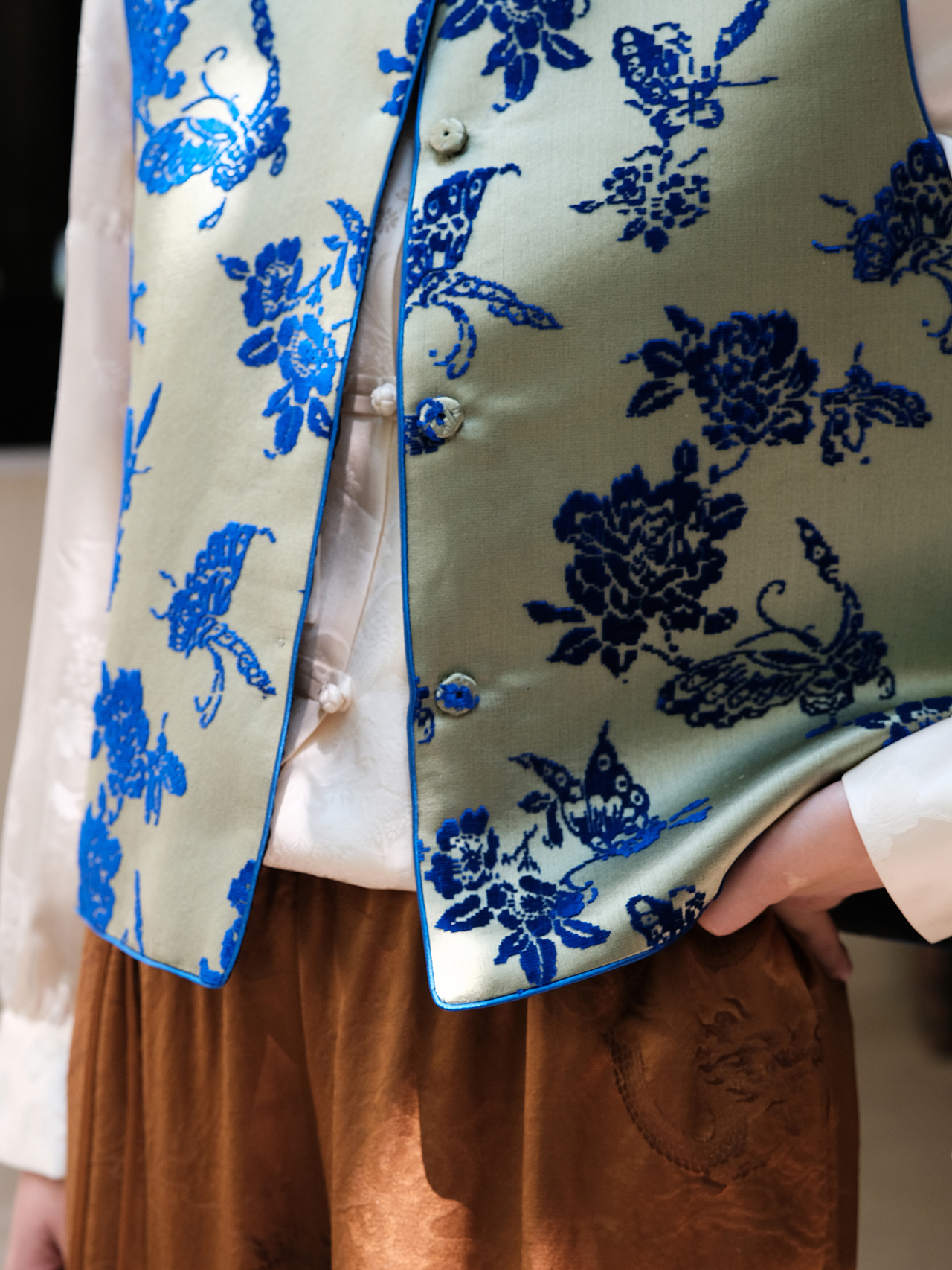 盛唐牡丹| 秋香绿底色真丝漳绒马甲