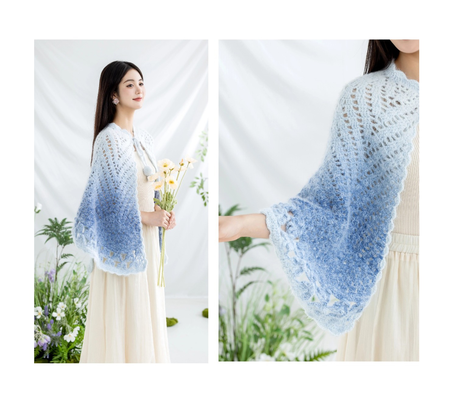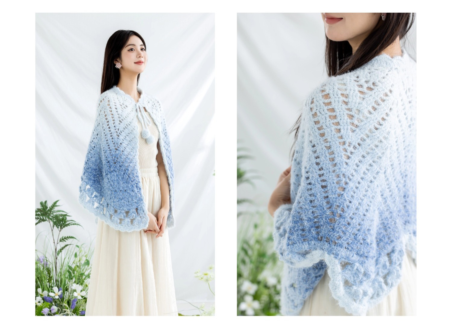 苏苏姐家蝴蝶披肩手工diy编织钩针毛线团渐变长绒线自制披肩材料包