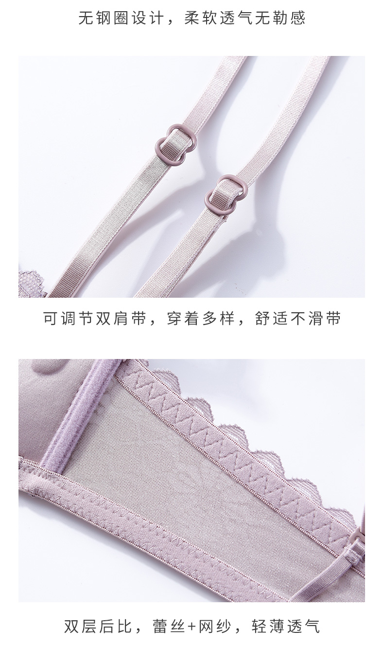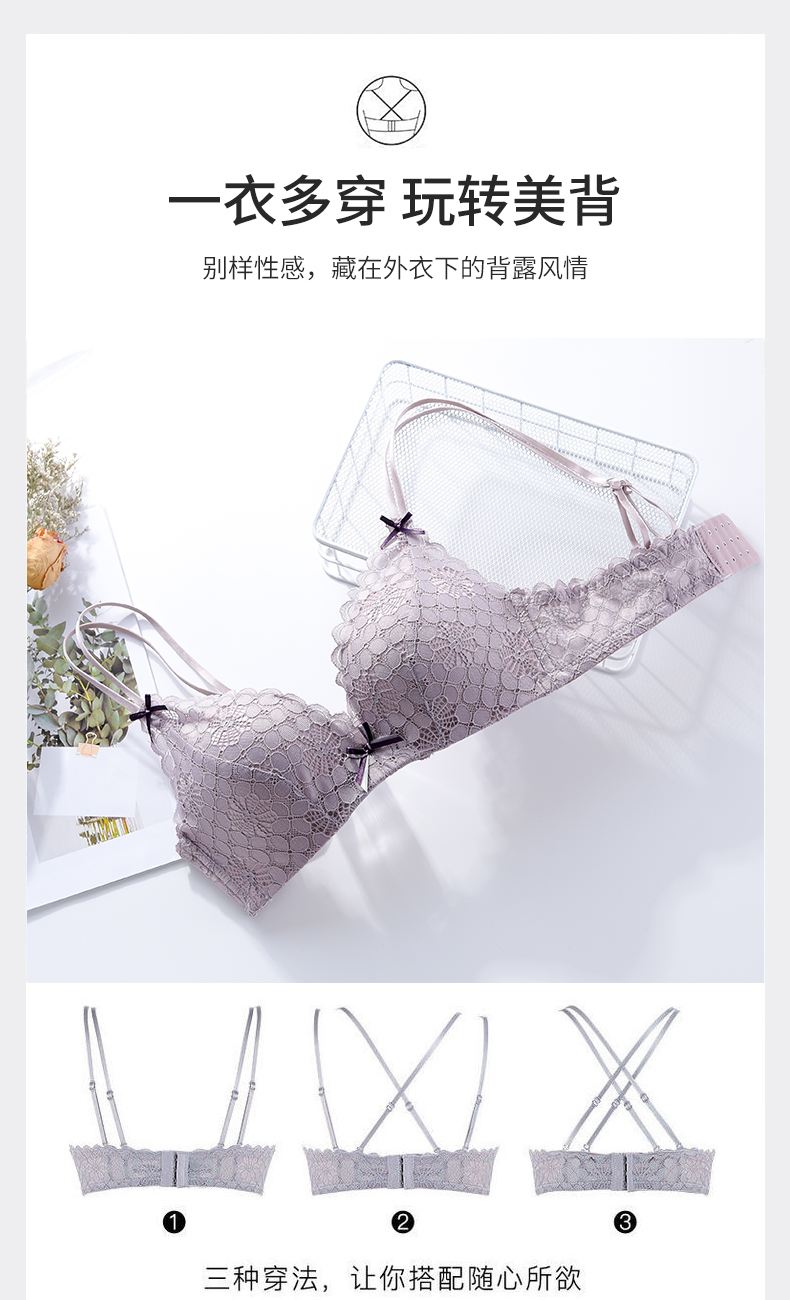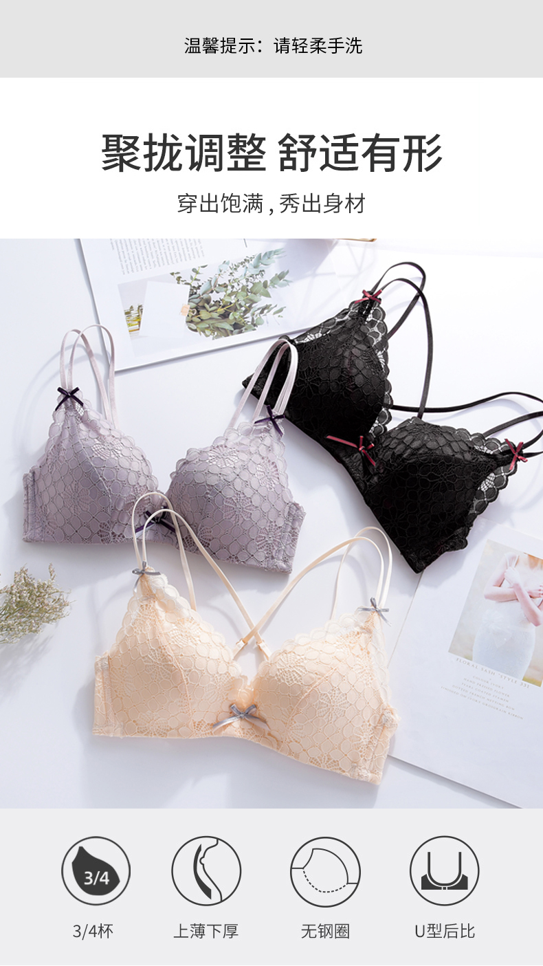 雅黛丽无钢圈双肩带美背文胸少女性感小胸内衣聚拢调整型胸罩