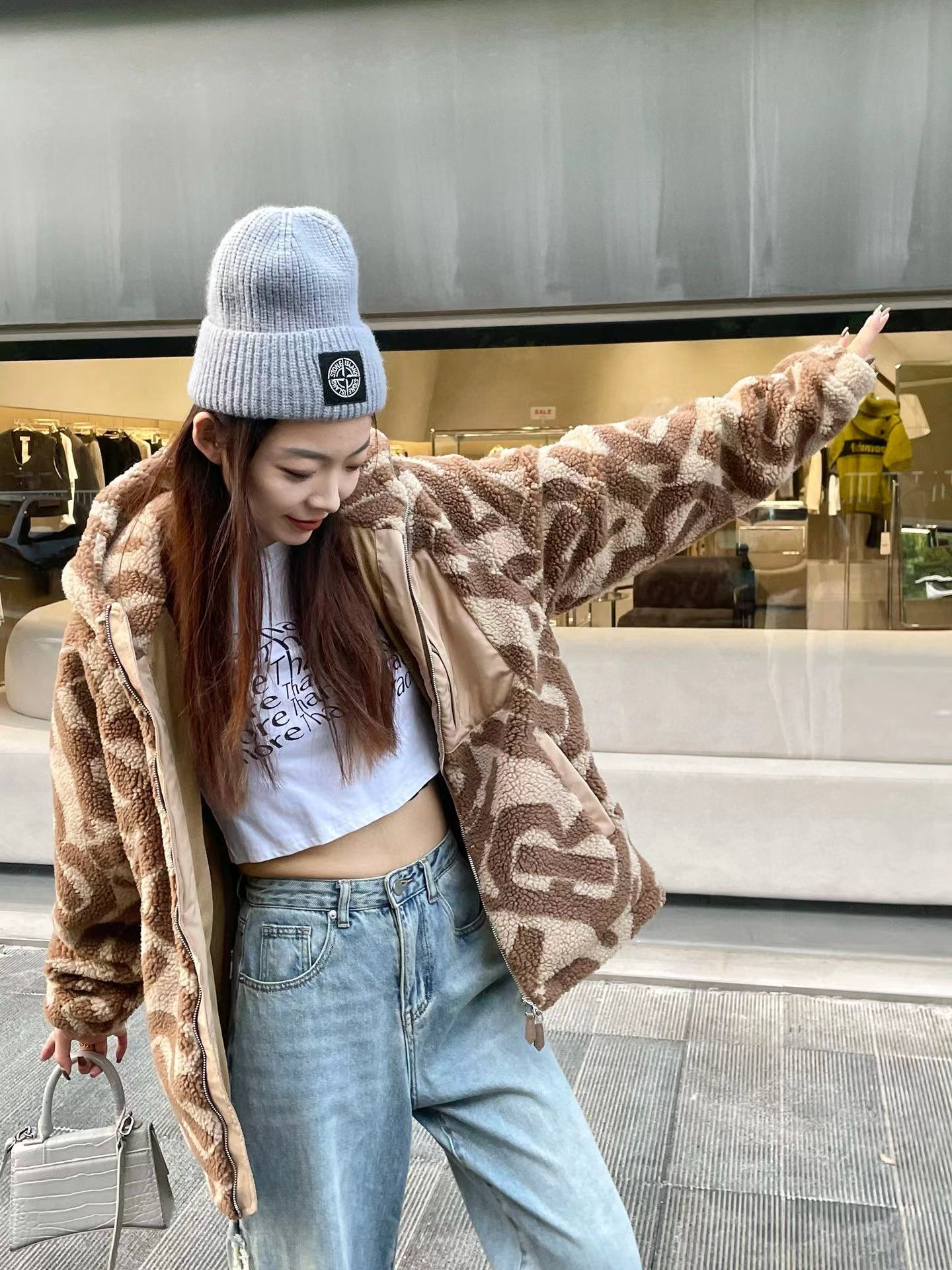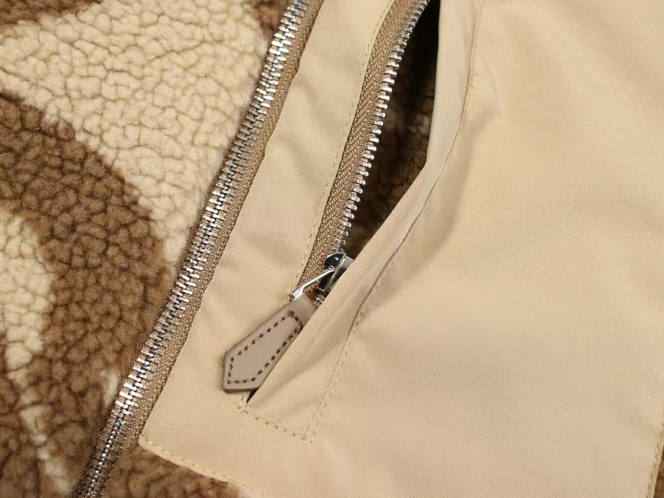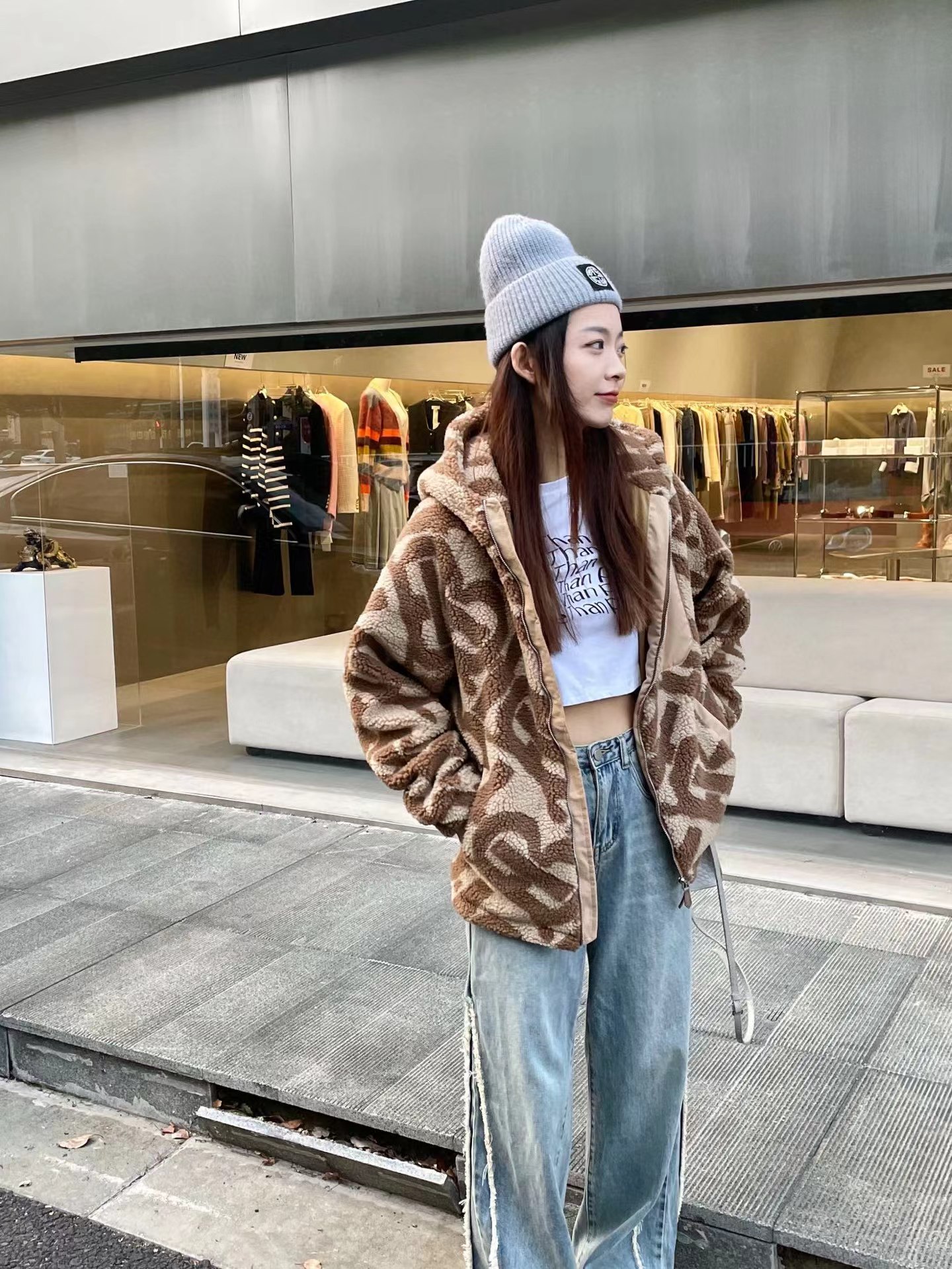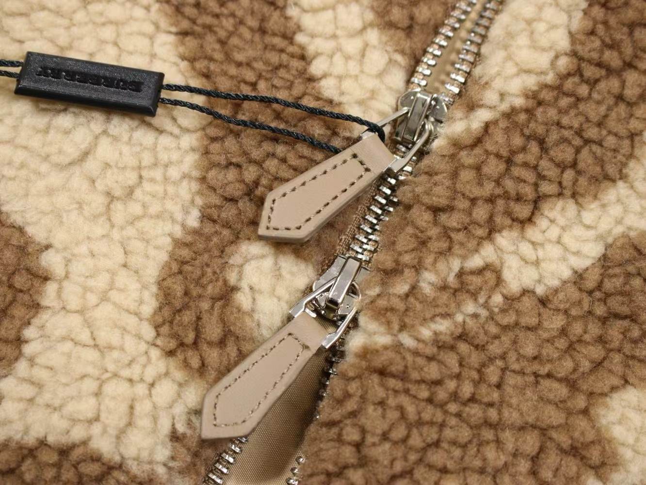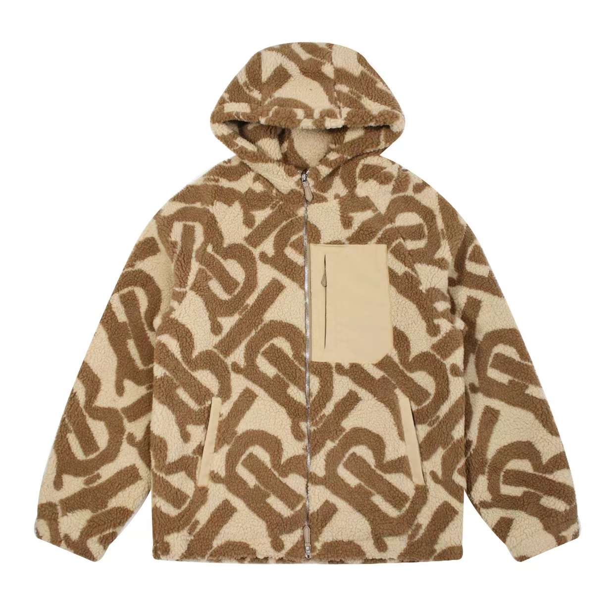 老花满印情侣连帽羊羔毛夹克加棉外套 面料采用定制羊羔毛面料 舒适 柔软 保暖性好 通过特殊缩水处理 不易变形 胸口口袋贴布
