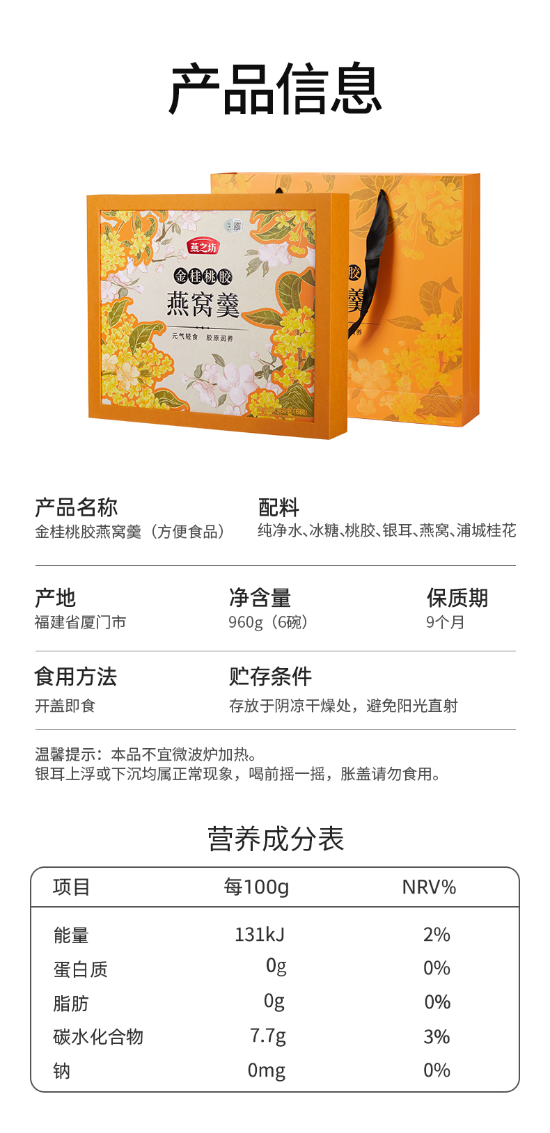 【商城专属】燕之坊 金桂桃胶燕窝羹礼盒960g