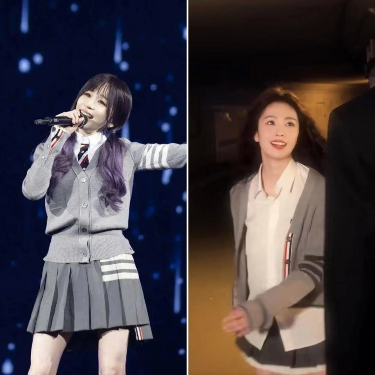 像小乔这样穿一套,再配一副墨镜,