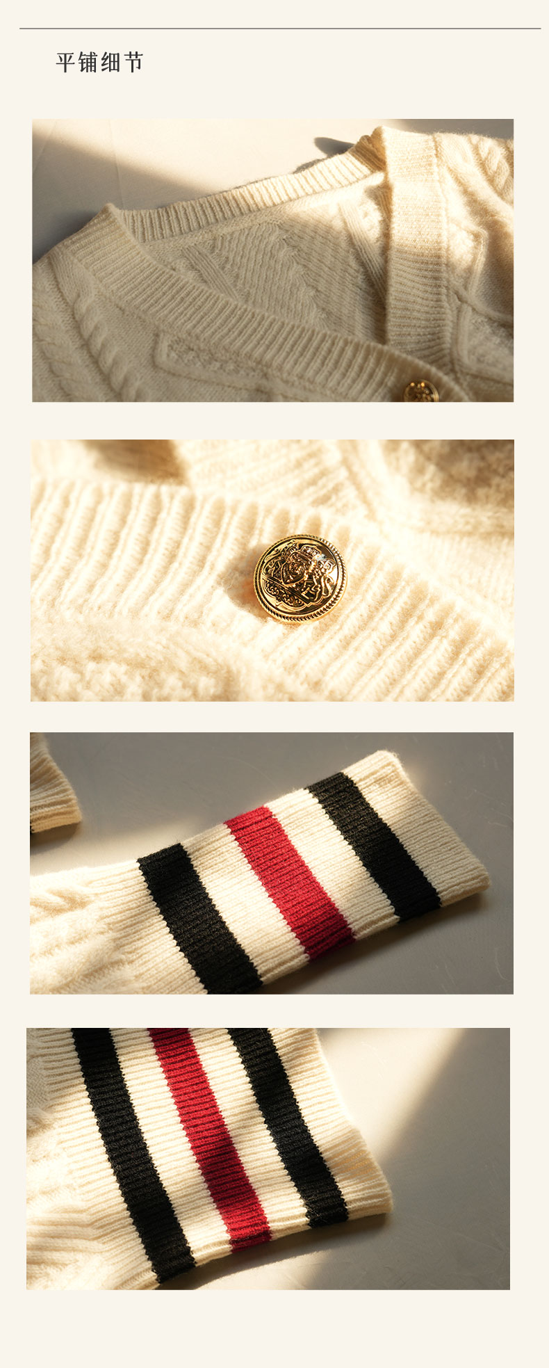 当你摸到它就能感受到那份云朵般的绵软细腻,搭配我精心搭配的金色纽扣,有着如阳光透过云层折射出的莹润光泽~~