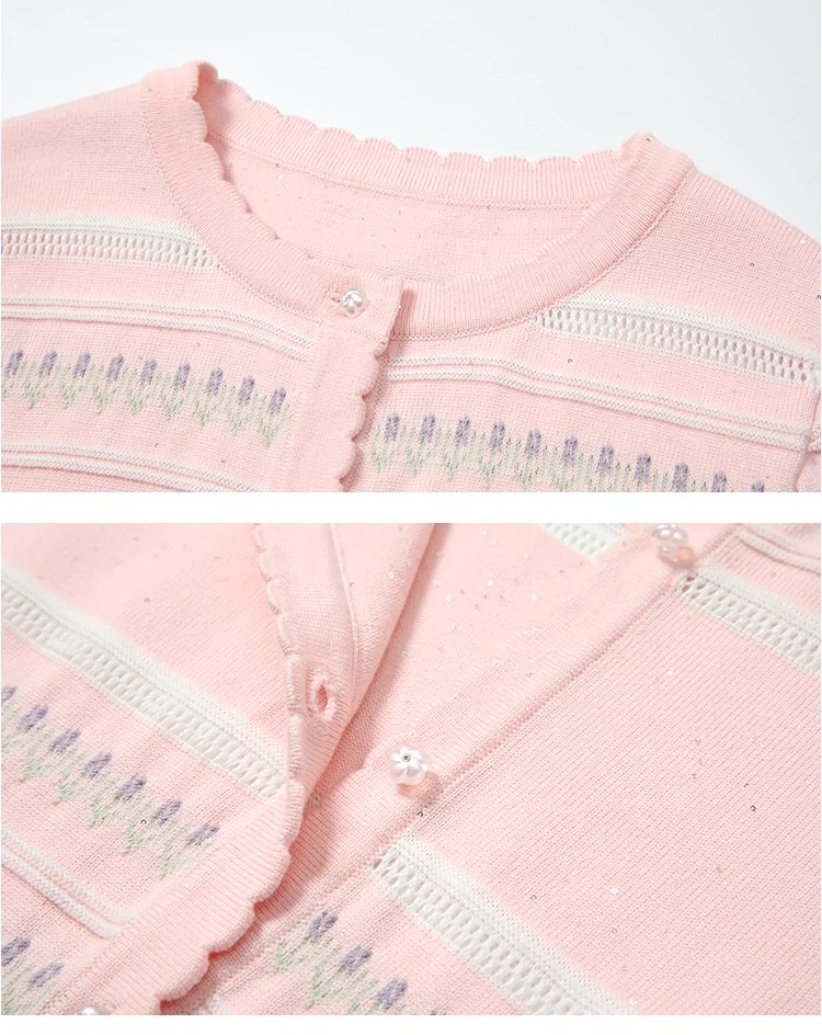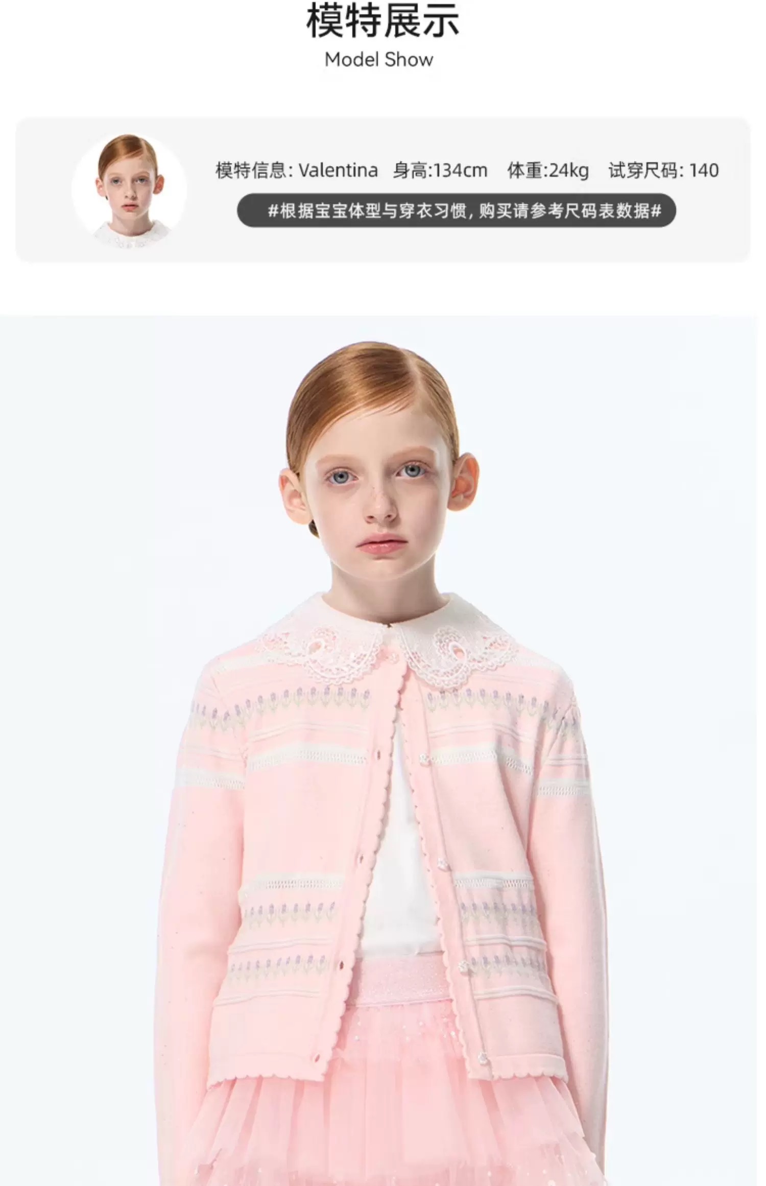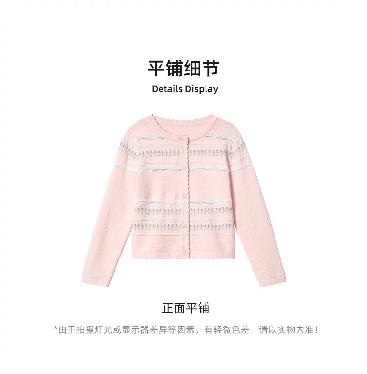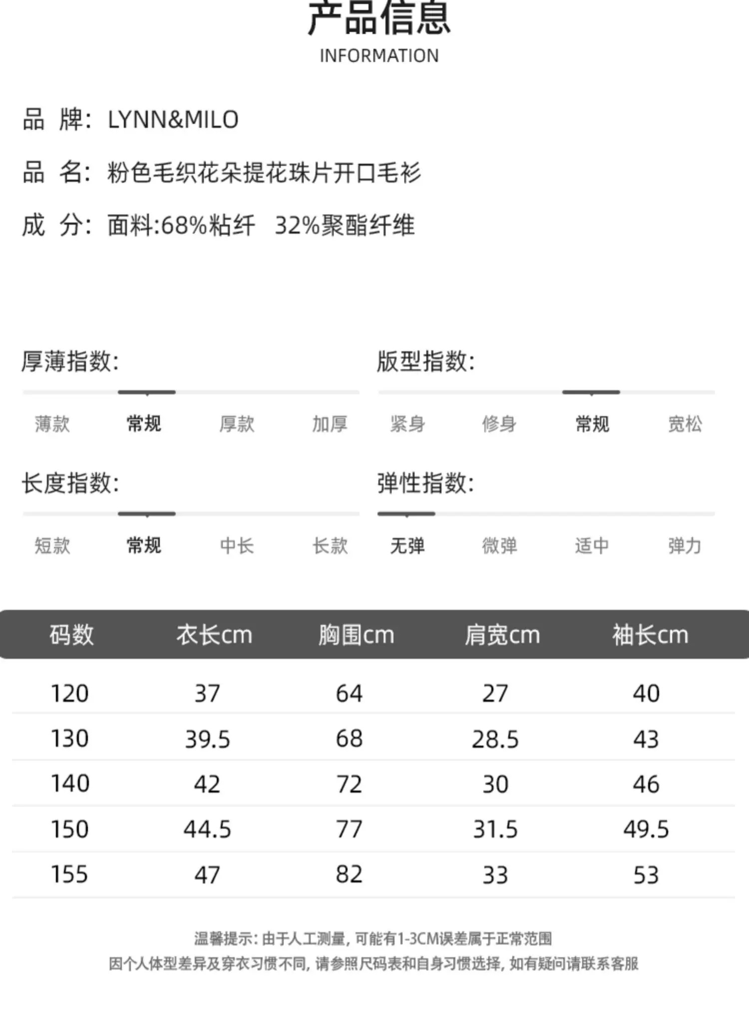 【春上新】【3折】8楼琳麦罗 LYNNMILO 粉色毛织花朵提花珠片开口毛衫 吊牌价:798元 活动价:239元