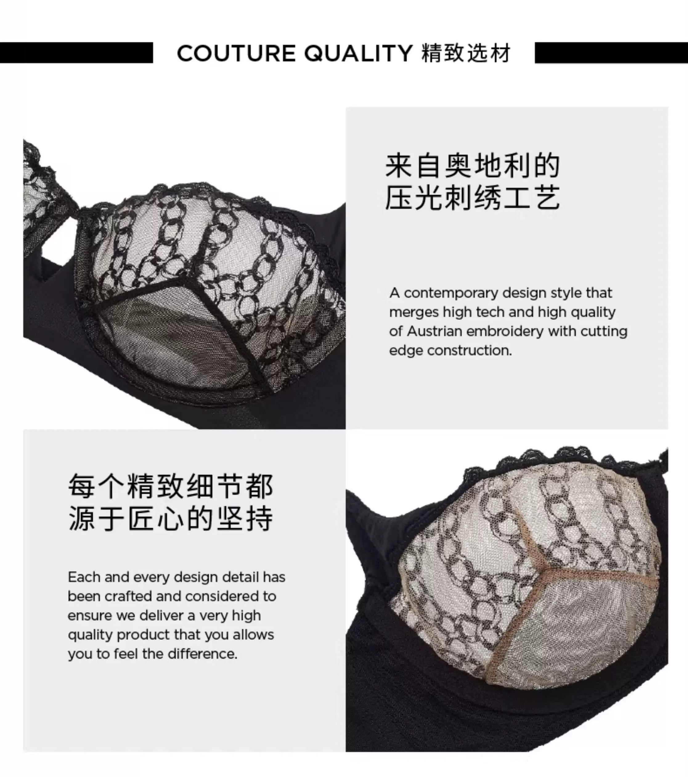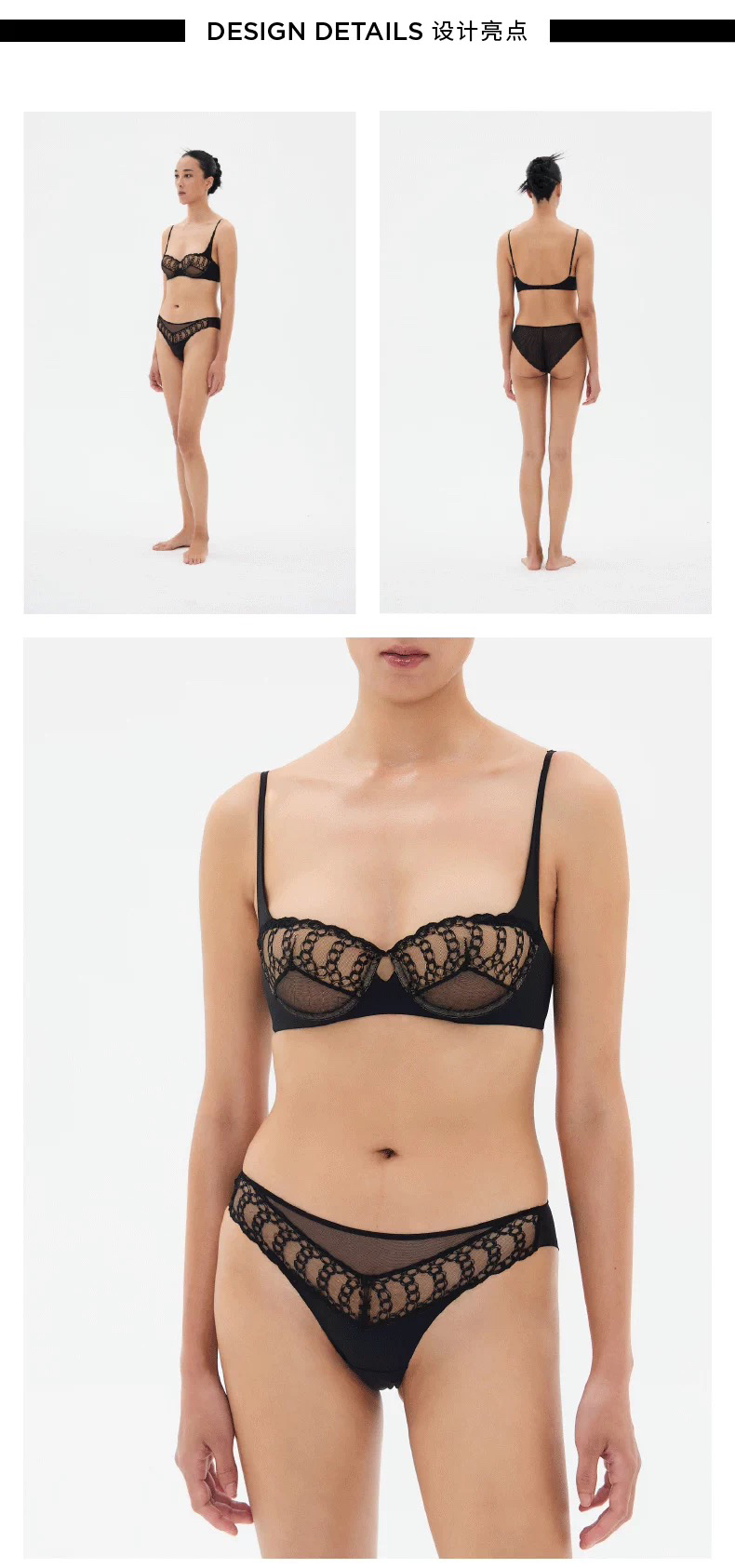 LOAM|链接 奥地利刺绣拼接1/2杯记忆钢圈 [ 曜石黑 ]