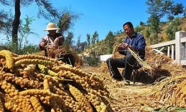 【百榖园小米】 原生态古法种植:经由选种—播种—锄禾—秋收—打场—晒谷—碾磨 等21道步骤 方能扬汤成粥。 原生态种植,自然生长,亩产产量仅200斤,谷穗也是长短不一。