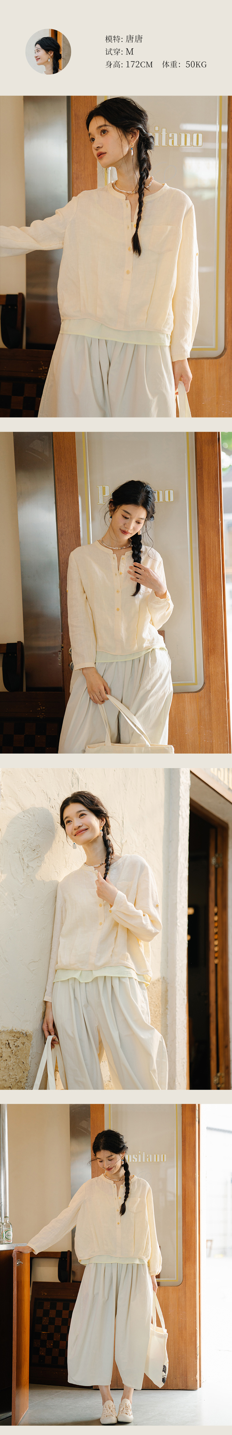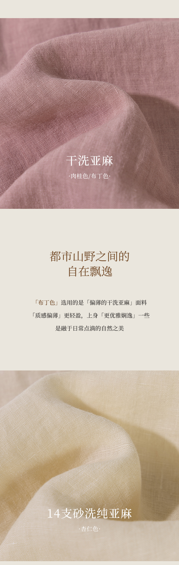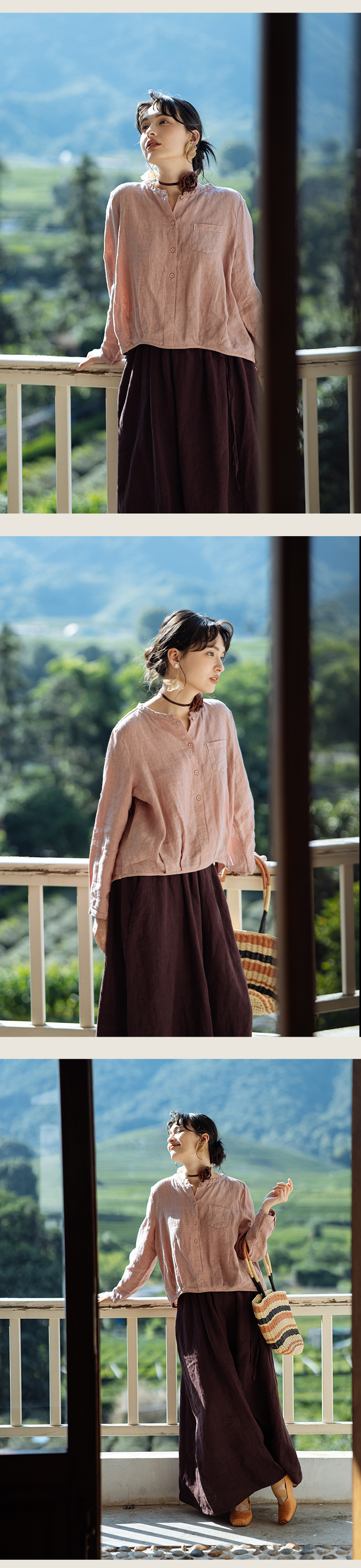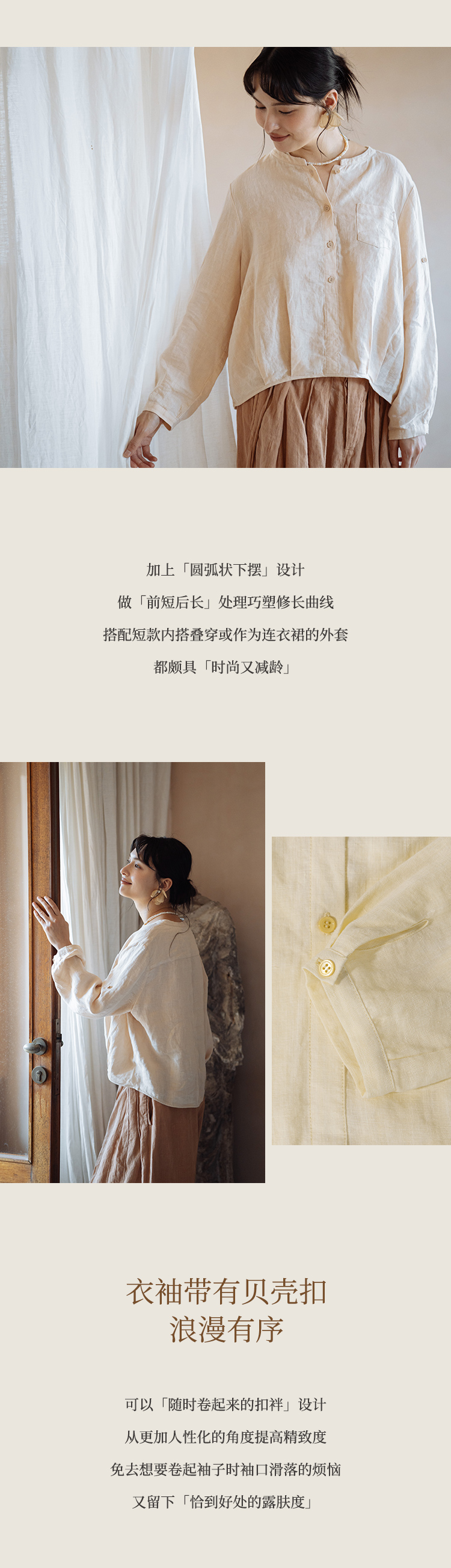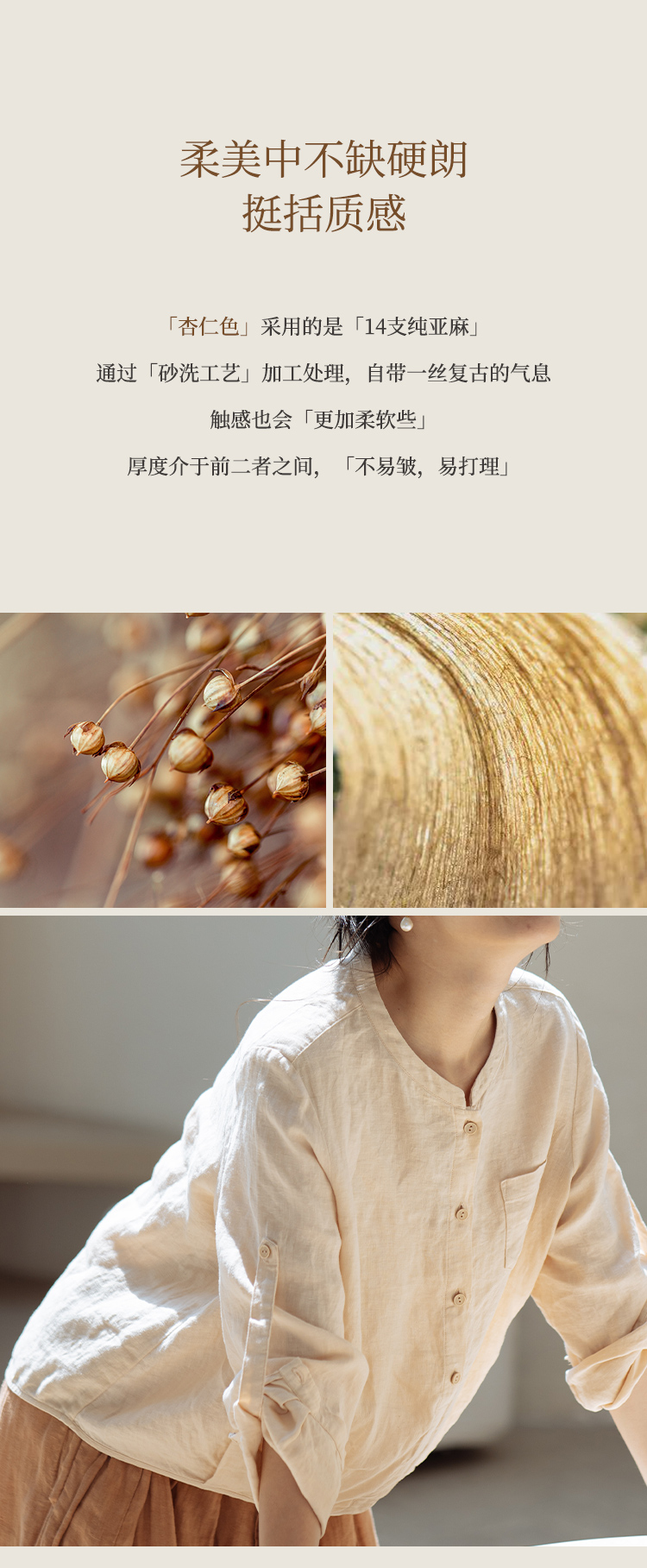 绽放632朵【甜茶系列】肉桂色干洗亚麻夏季长袖衬衣小衫